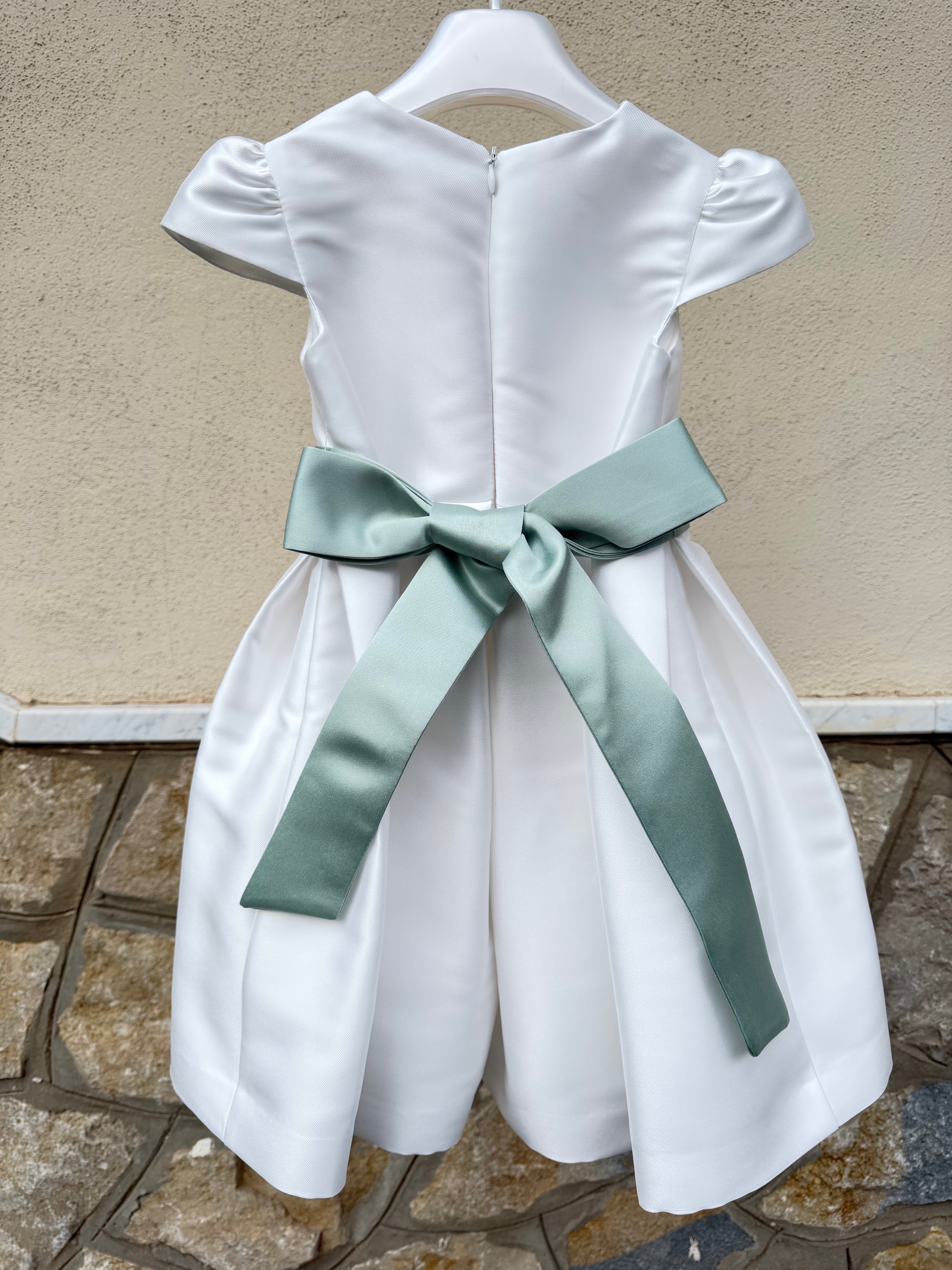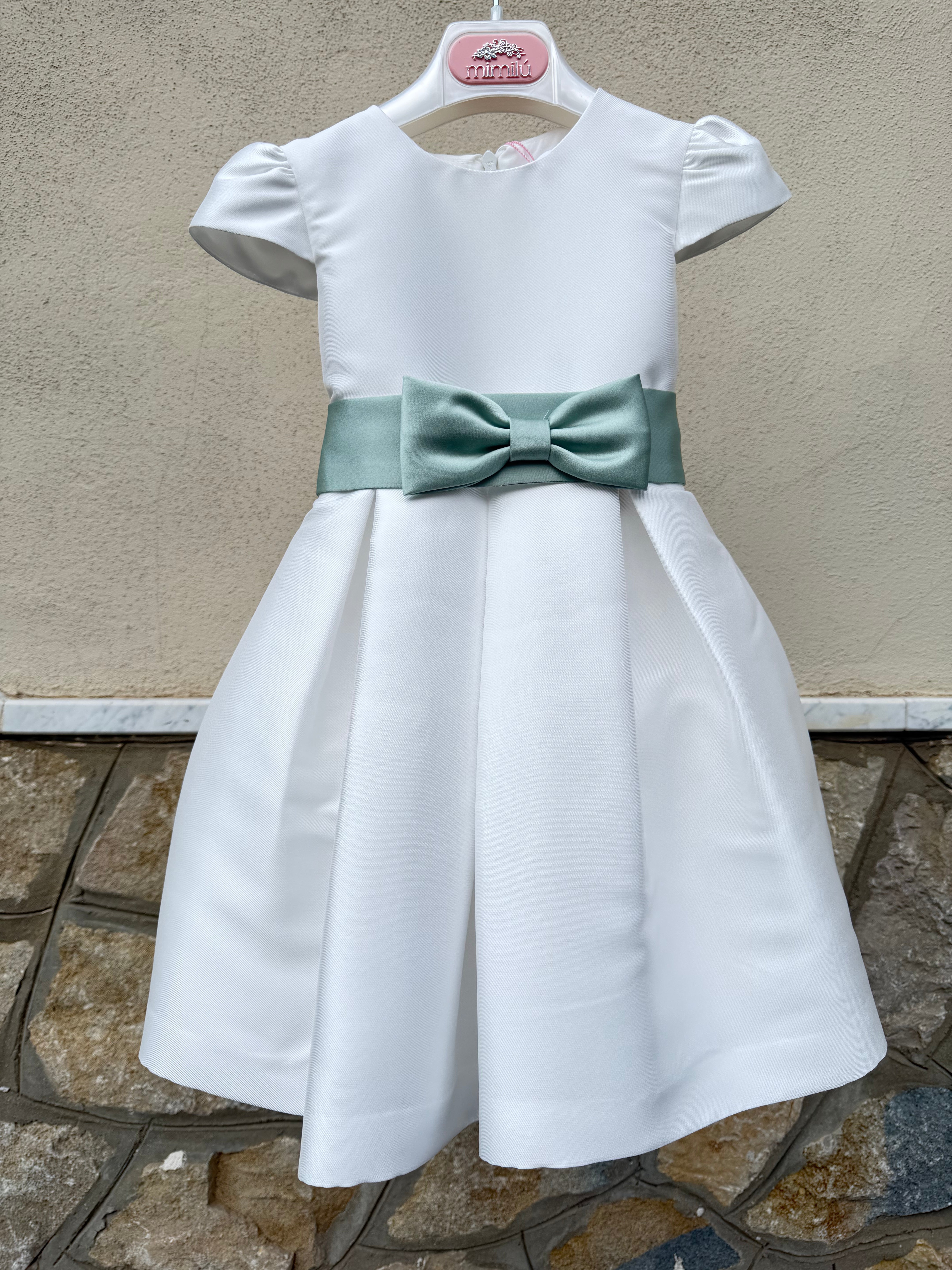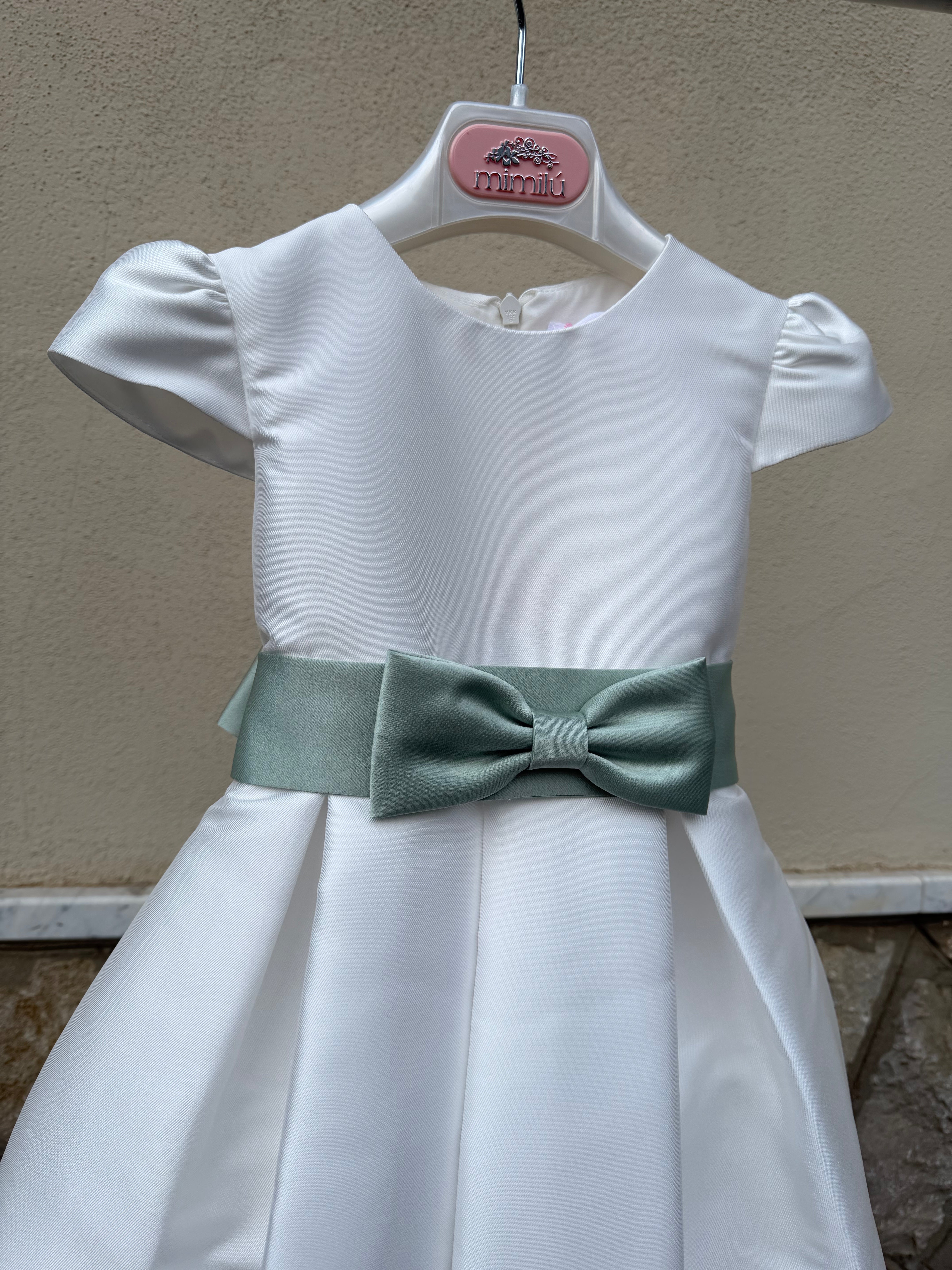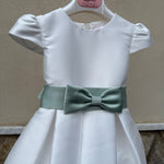 Abito elegante in mikado per bambina, perfetto per occasioni speciali. Il modello a mezza manica garantisce comfort e praticità, mentre la fascia in vita aggiunge un tocco di raffinatezza. Il tessuto mikado, nobile e strutturato, assicura una caduta impeccabile e una silhouette elegante. Ideale per cerimonie, feste e momenti importanti. Realizzato con cura nei dettagli per valorizzare la bellezza naturale della piccola indossatrice.