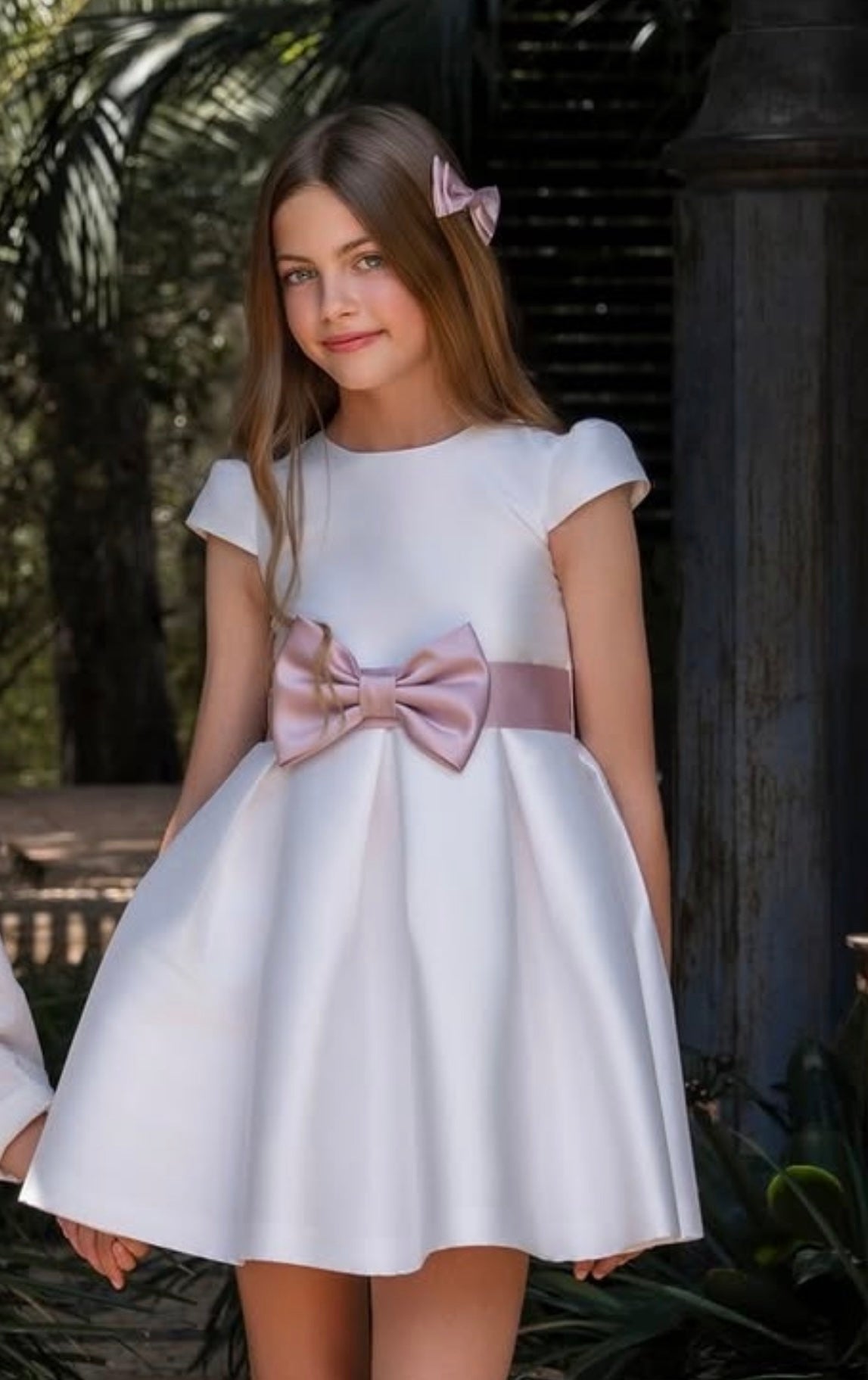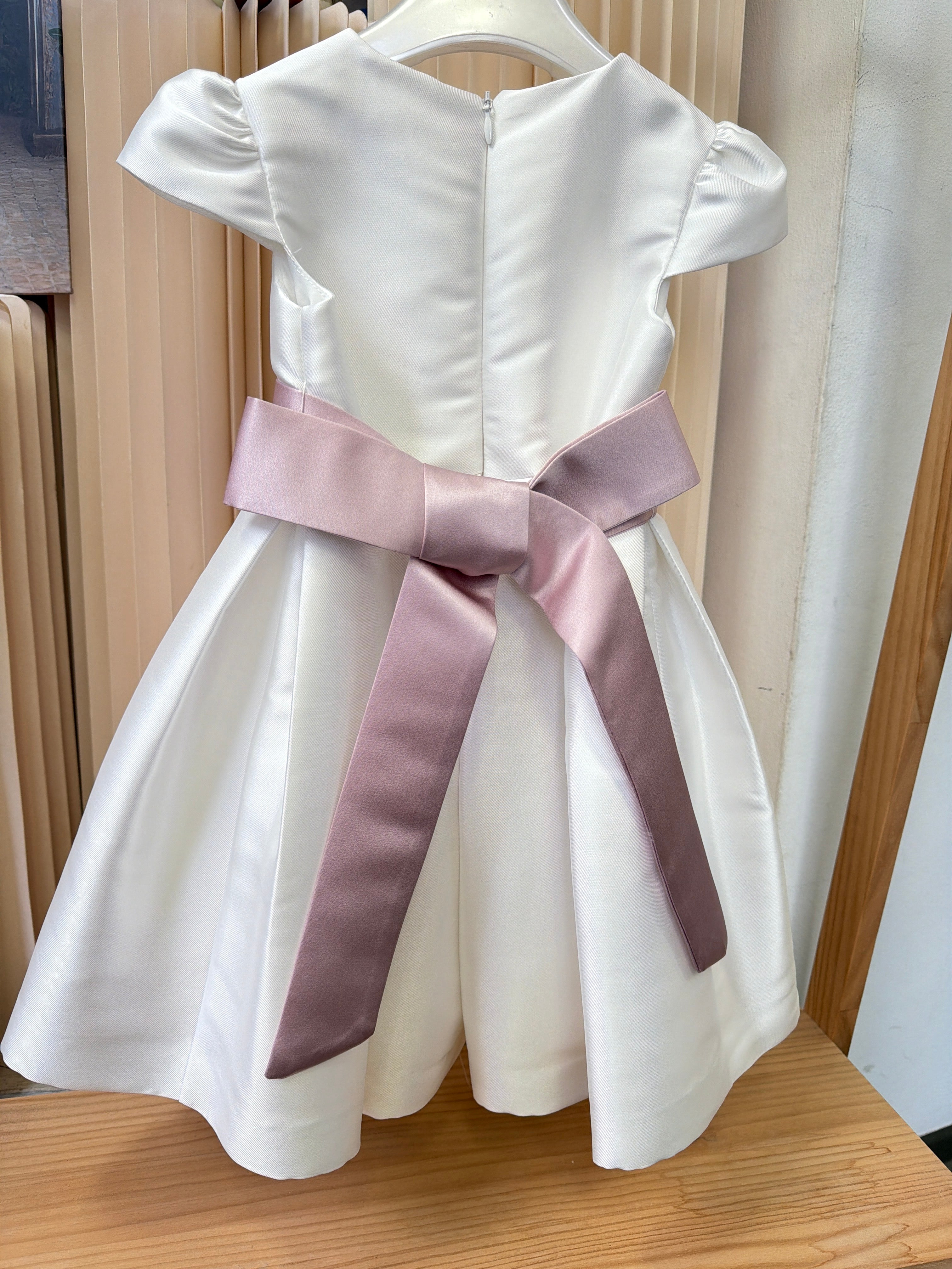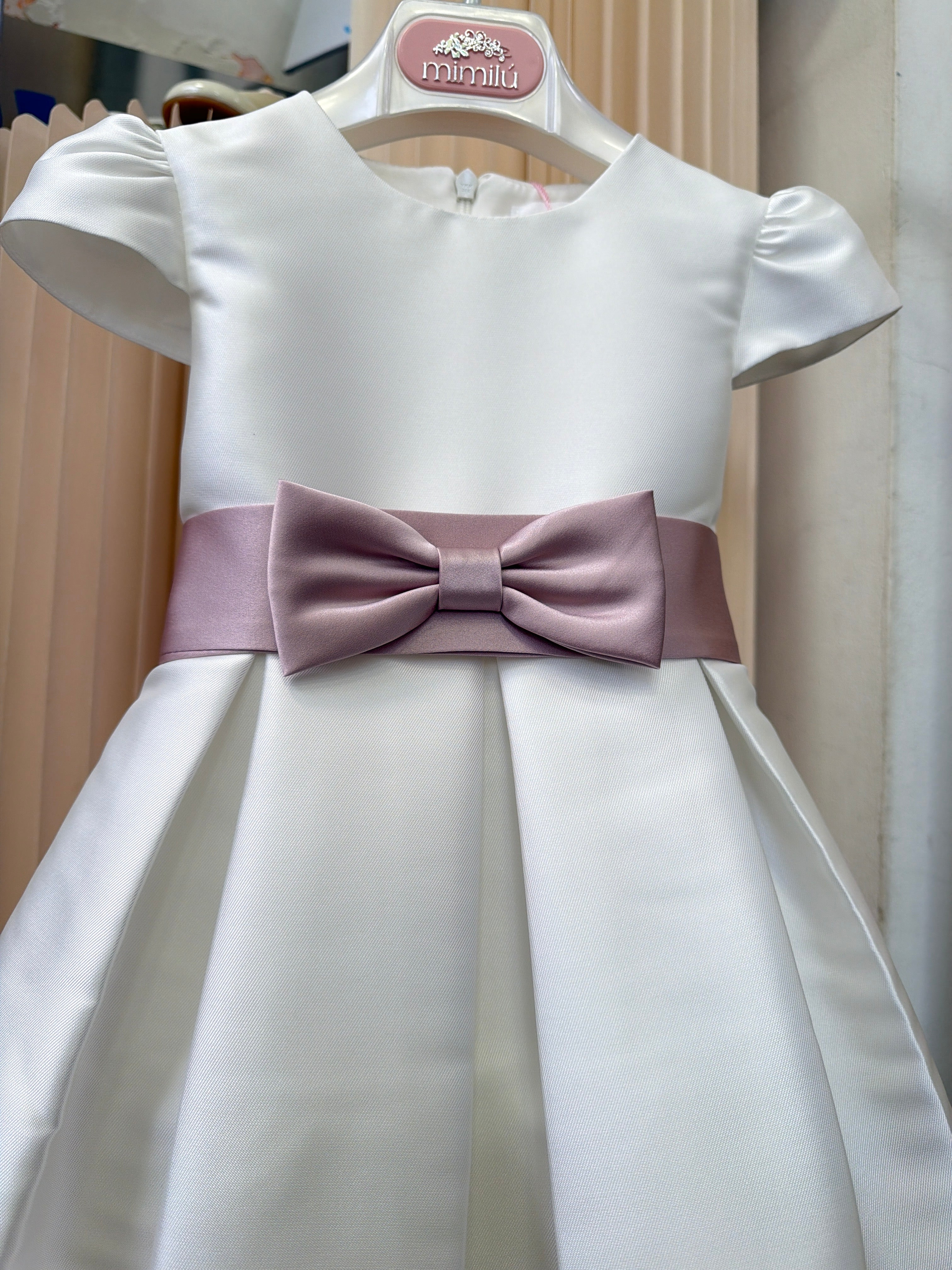 Abito elegante in mikado per bambina, perfetto per occasioni speciali. Il modello a mezza manica garantisce comfort e praticità, mentre la fascia in vita aggiunge un tocco di raffinatezza. Il tessuto mikado, nobile e strutturato, assicura una caduta impeccabile e una silhouette elegante. Ideale per cerimonie, feste e momenti importanti. Realizzato con cura nei dettagli per valorizzare la bellezza naturale della piccola indossatrice.