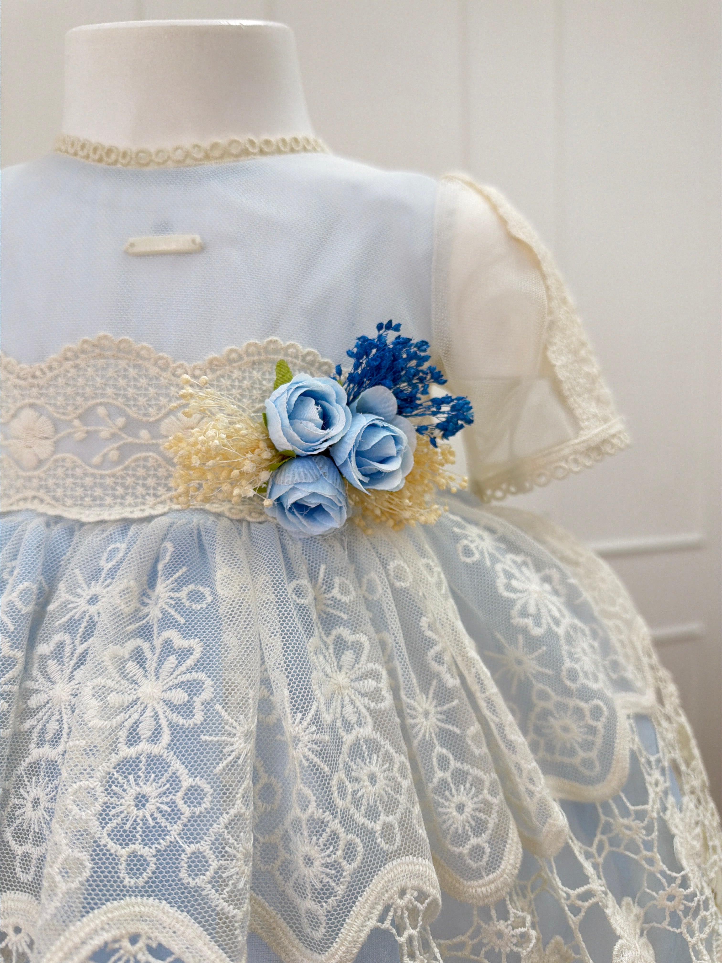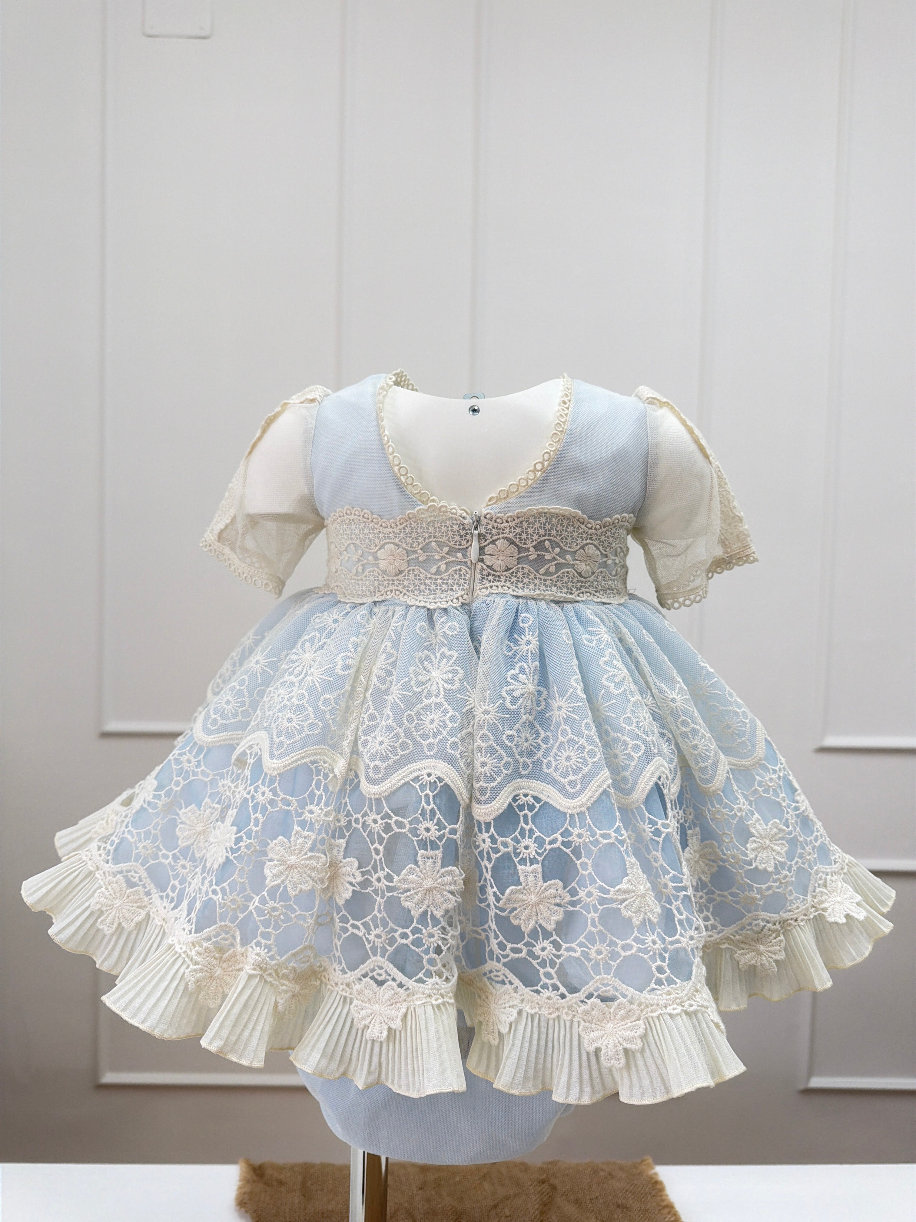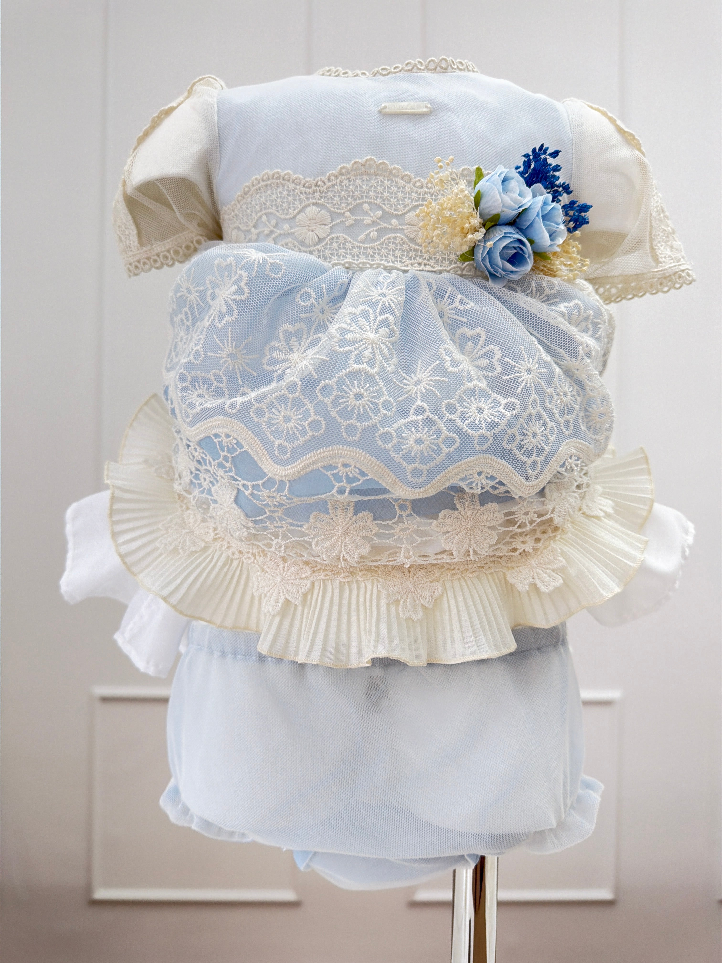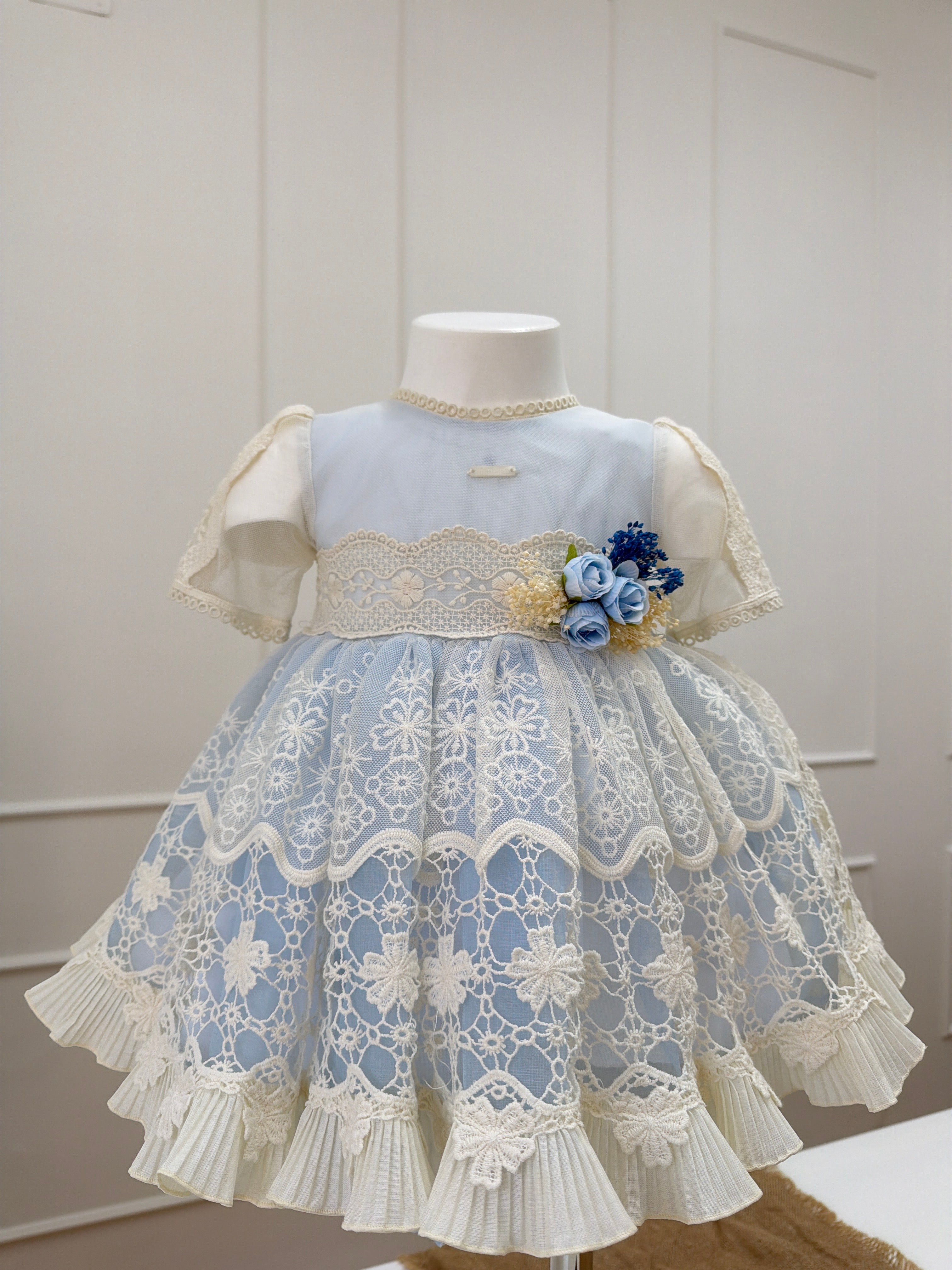 Questo delicato abito neonata combina eleganza senza tempo con comfort essenziale. Realizzato in pizzo raffinato, presenta maniche a mezza lunghezza che garantiscono praticità nei cambi frequenti. La silhouette morbida si adatta perfettamente al corpo delicato della piccola, mentre i dettagli in pizzo aggiungono un tocco di sofisticatezza ideale per occasioni speciali. Perfetto per battesimi, cerimonie e momenti importanti, questo capo unisce stile consapevole e funzionalità pensata per i neonati.