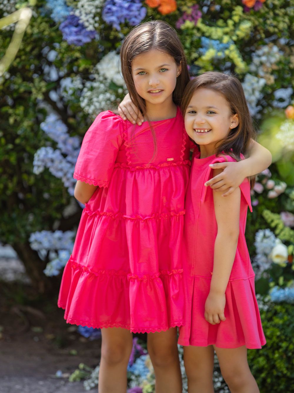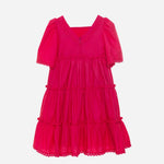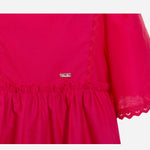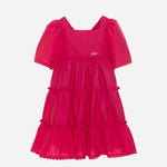 Entzückendes fuchsiafarbenes Kleid für Mädchen von Patachou aus Popeline mit mehrlagigem Rock.