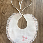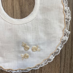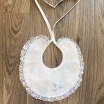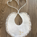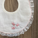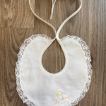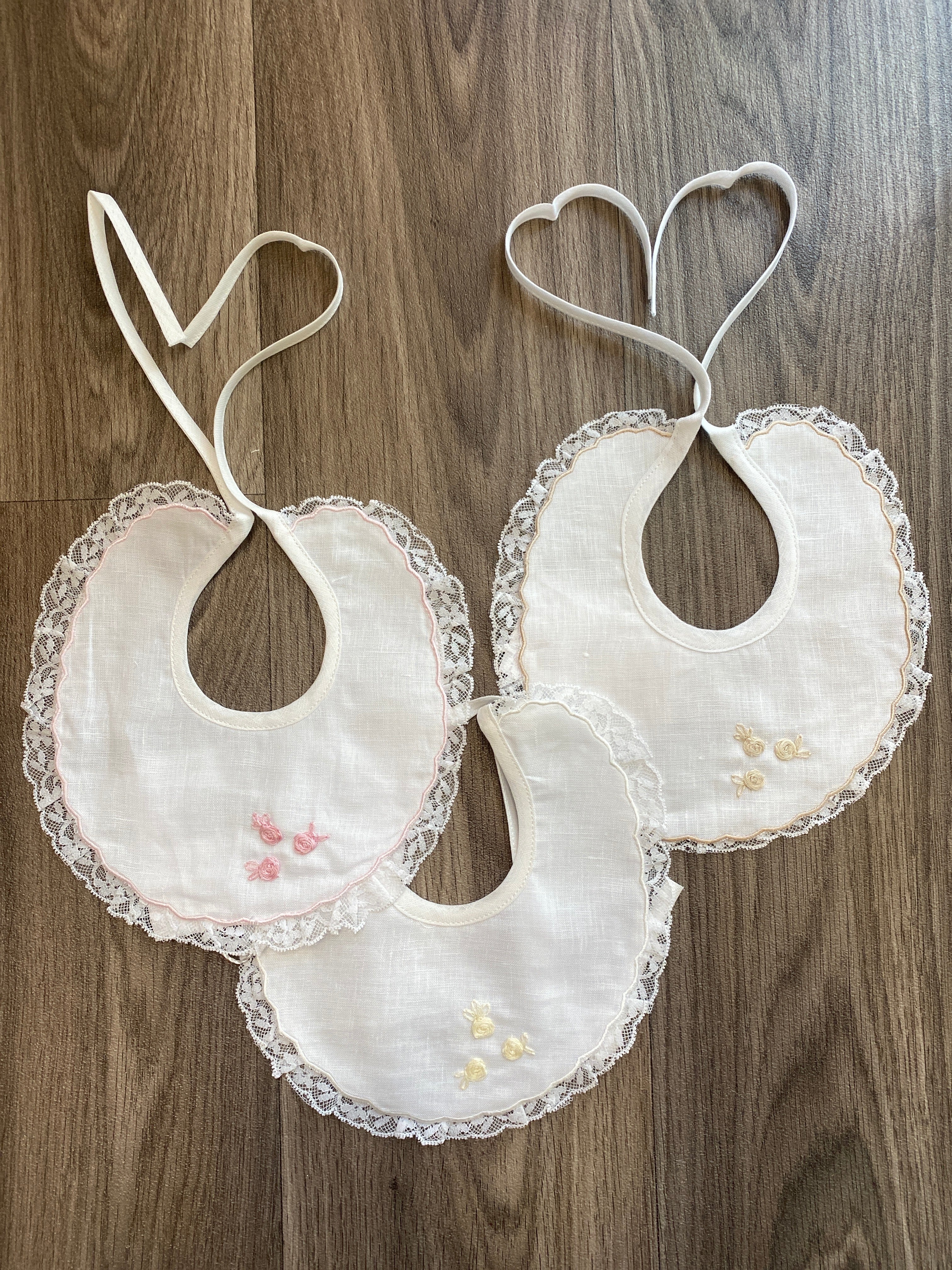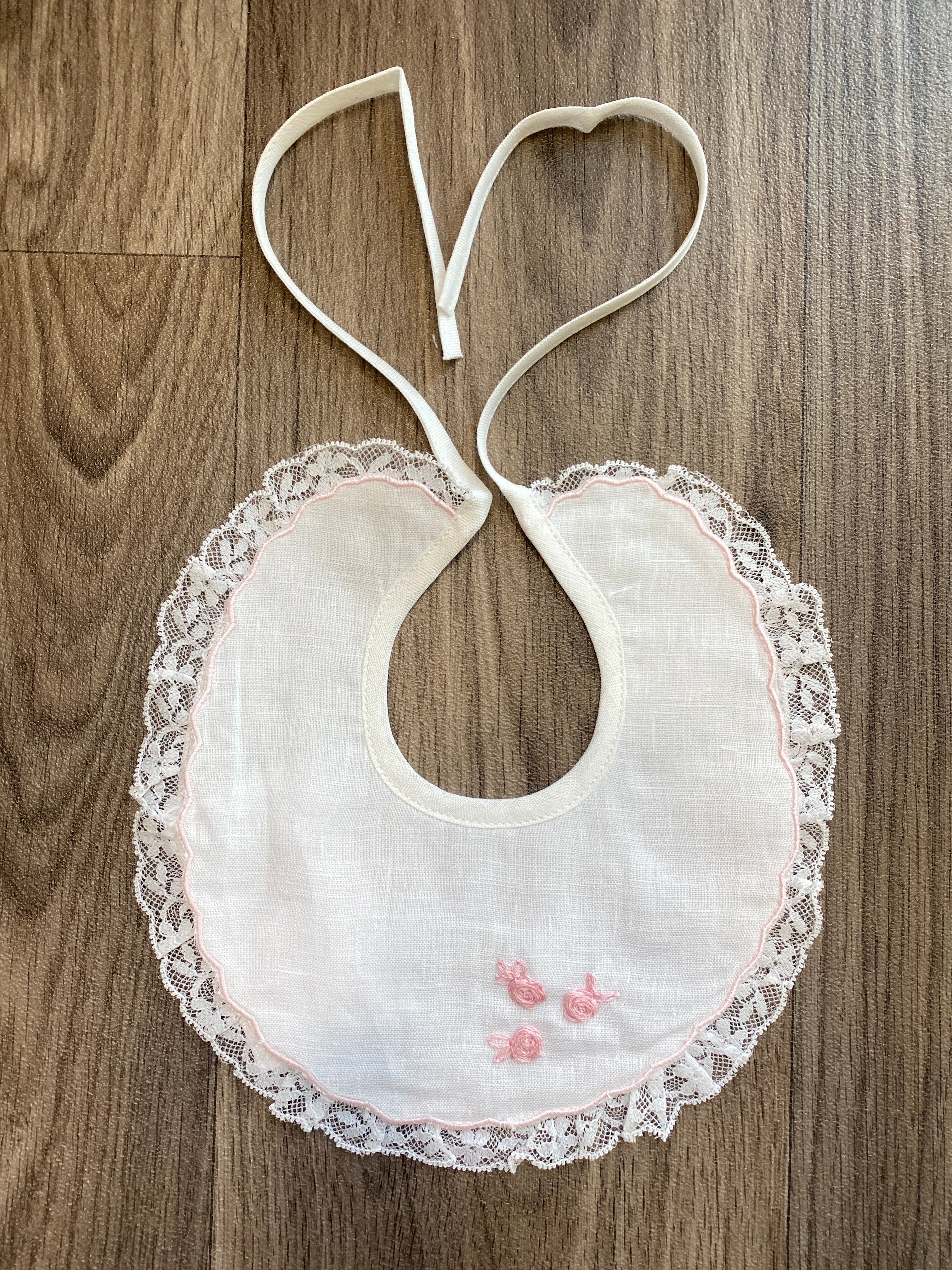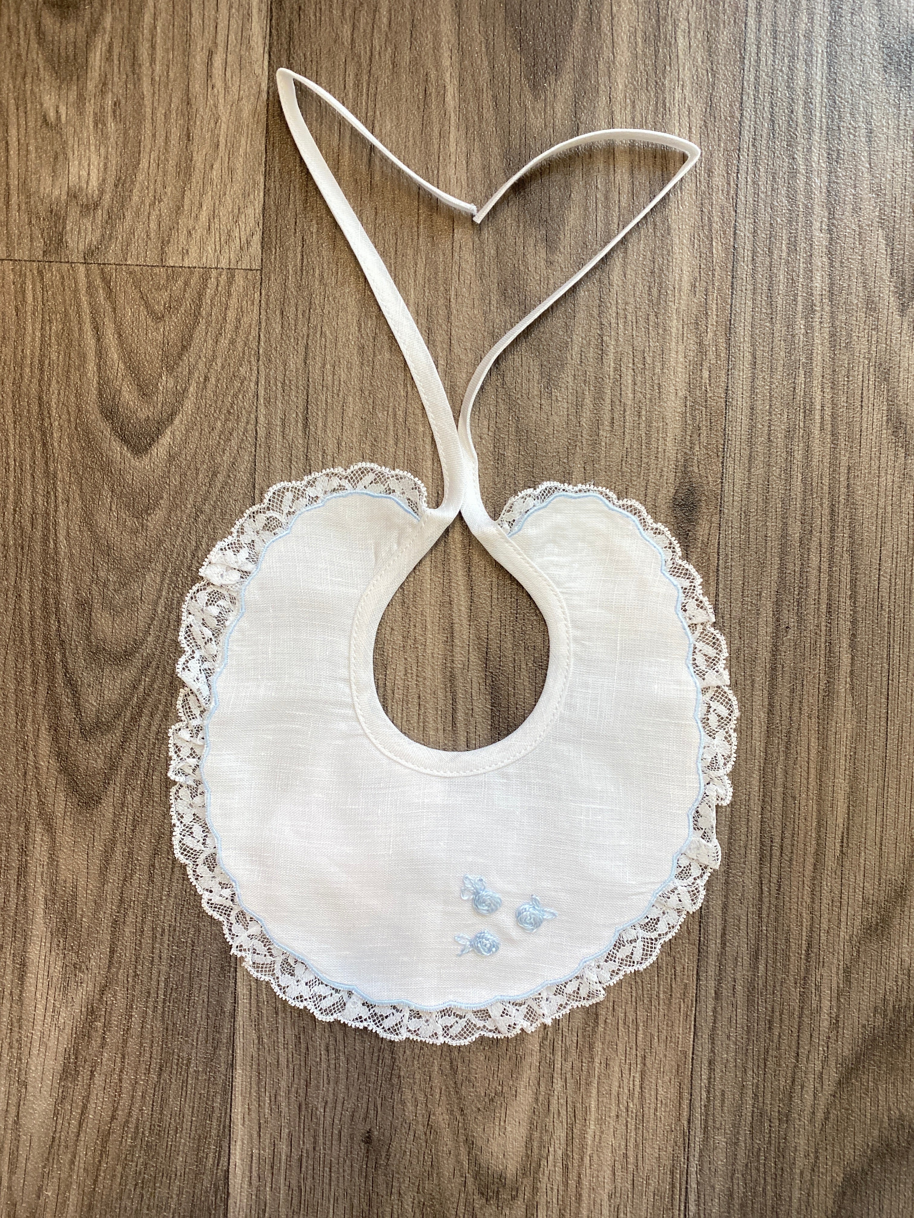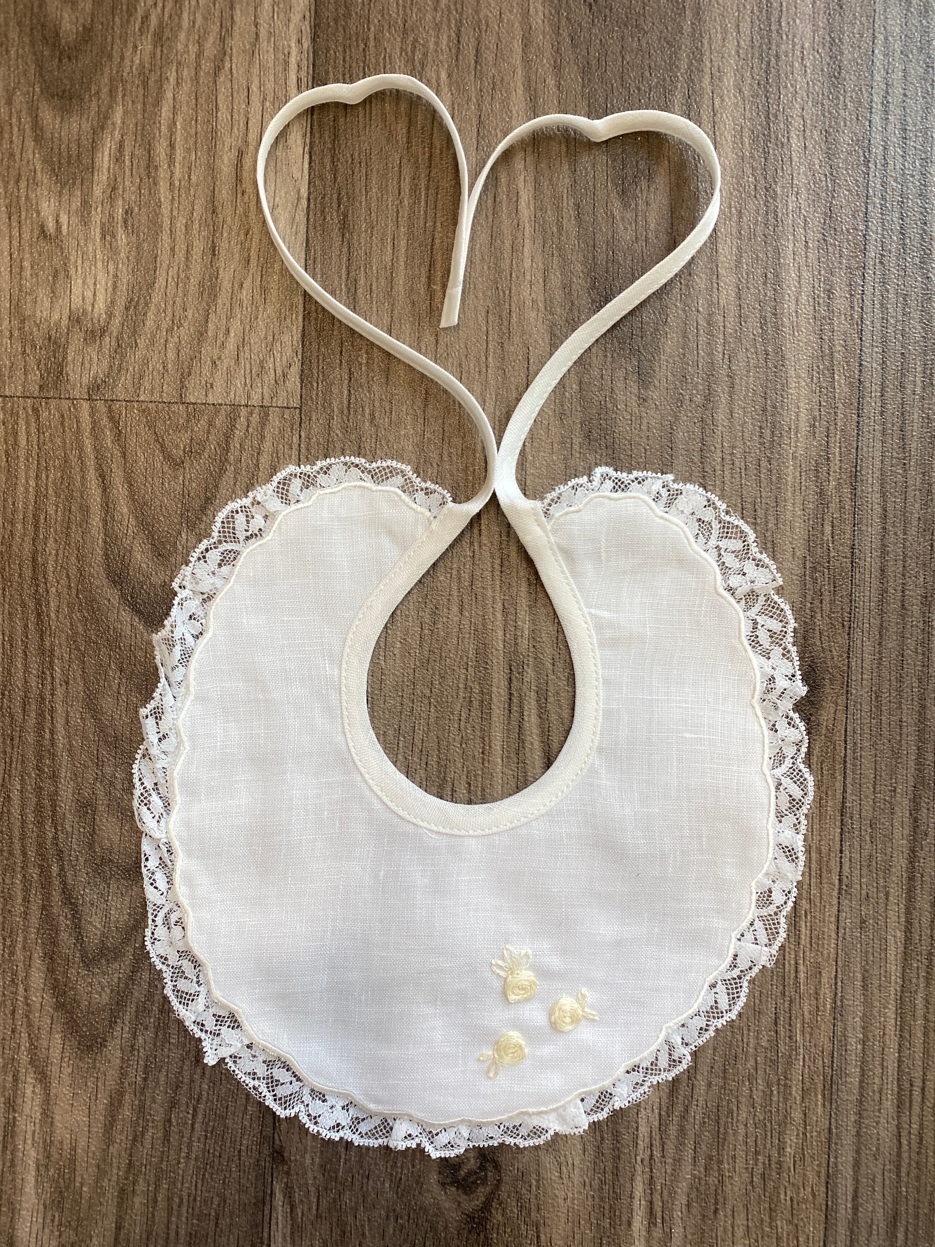 Questa bavetta in lino con ricamo e pizzo valencienne è perfetta per i neonati. Il lino è un materiale naturale e traspirante, ideale per la pelle delicata dei neonati. Il ricamo a mano di roselline aggiunge un tocco di eleganza e dolcezza. Disegnata e realizzata con cura dalla Sartoria dei Piccoli.