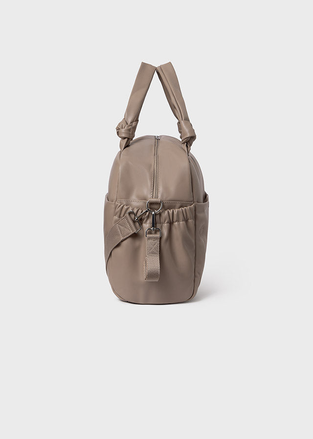 Spazioso borsone utile per poter conservare e portare con te tutto il necessario per il tuo/a piccolo/a. Chiusura con cerniera Parte esterna in similpelle. Con manico a spalla rimovibile al fine di un utilizzo anche a mano e offrire una maggiore versatilità dell'articolo. Con manici rimovibili da poter appendere al passeggino. Modello con varie tasche. Misure: 29 cm di altezza, 42 cm di larghezza e 20 cm di profondità.