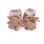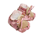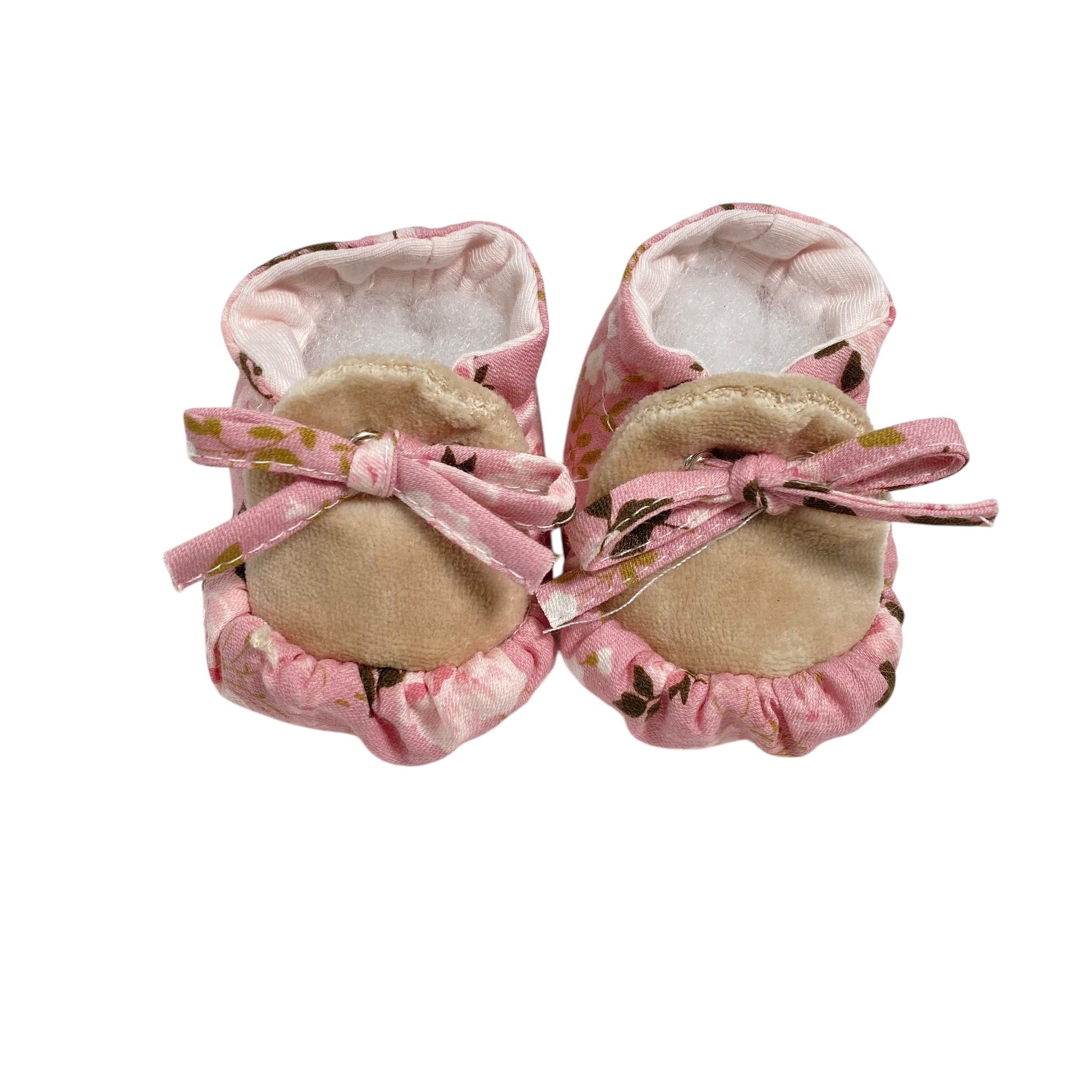 Schuhsocken aus warmer geblümter Baumwolle und beigefarbener Chenille.