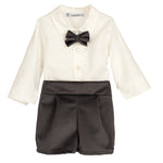 Questo completo elegante per bambino include bermuda in velluto raffinato, abbinati a una camicia dal taglio classico e un papillon coordinato, che conferiscono stile e comfort di alta qualità. Perfetto per occasioni speciali, l’insieme unisce tradizione e tendenze moderne, garantendo una vestibilità ordinata e piacevole sulla pelle delicata del bambino. Un capo distintivo per chi cerca un look curato e alla moda sin dai primi mesi.