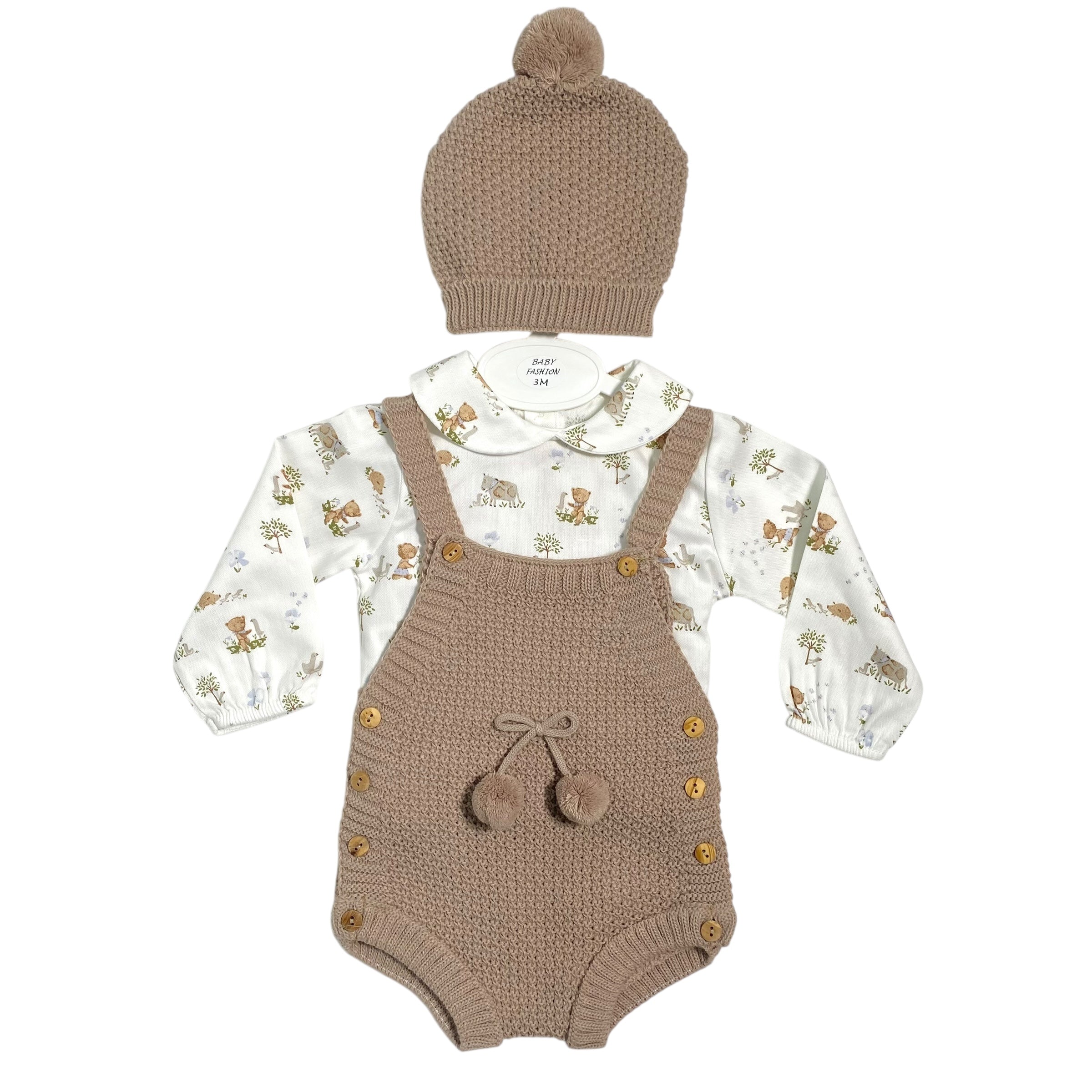 Il completo BABY FASHION è perfetto per il tuo neonato! Include un pagliaccetto e una camicia stampata con un colletto tondo, insieme ad un cappello abbinato. Elegante, casual e alla moda, questo completo è ideale per ogni occasione.