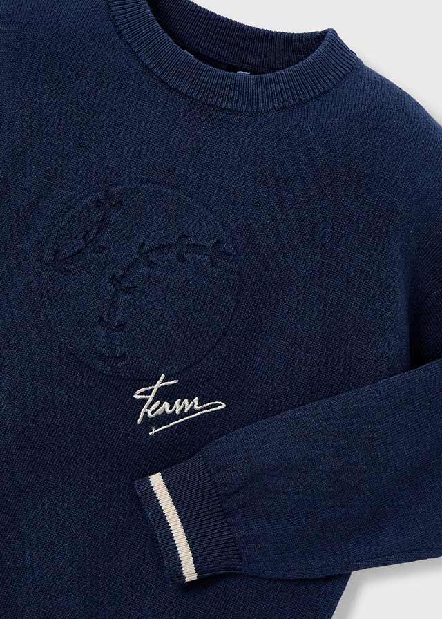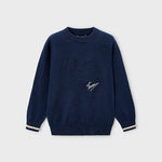 Contiene poliammide riciclato. Maglione manica lunga per bambino con dettagli a contrasto. Girocollo. Elementi decorativi: ricamo, dettaglio in rilievo (embossed).