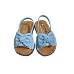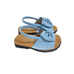 Sandalen für die ersten Schritte mit Wildlederschleife und Gummizug auf der Rückseite.