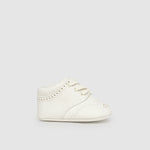 Scarpe eleganti per neonato ideali per i momenti più eleganti senza rinunciare alla comodità. Materiale esterno effetto pelle. Scarpa con fodera interna e soletta in cotone traspirabile. Suola in gomma antiscivolo che dona maggiore aderenza al passo. Chiusura con cordoncini che garantisce una migliore vestibilità e semplifica la calzata. Trama traforata decorativa. Questo articolo è spedito all'interno di una confezione della linea Newborn, ideale come regalo.