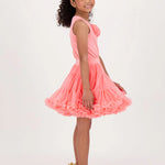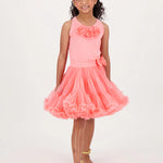 Top estivo grazioso e giocoso in corallo. Dettagliato con rose di tulle sul davanti e caratterizzato dal nostro caratteristico fiocco e ciondolo a cuore dorato sul retro. Questo grazioso top è liscio sulla pelle, realizzato nel nostro misto cotone più morbido. Vestibilità facile da indossare.