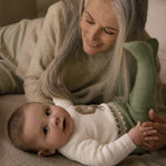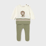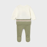 Questo completo in tricot di due pezzi per neonato è costituito da maglioncino e ghettina abbinata.