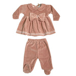 Questa tutina spezzata in morbida ciniglia è pensata per i primi giorni della tua neonata, offrendo una vestibilità comoda e avvolgente. Il tessuto soffice assicura calore e delicata protezione, mentre il fioccone sul davanti aggiunge un tocco di eleganza semplice e raffinata. Un capo essenziale per accompagnare con stile e delicatezza i primissimi momenti di vita.