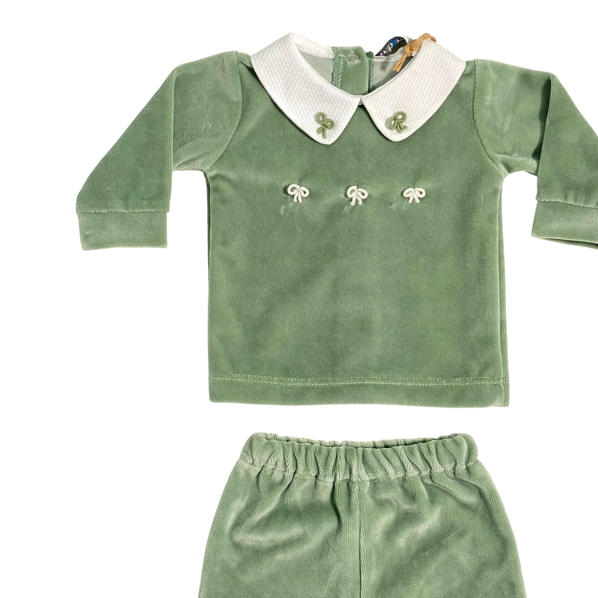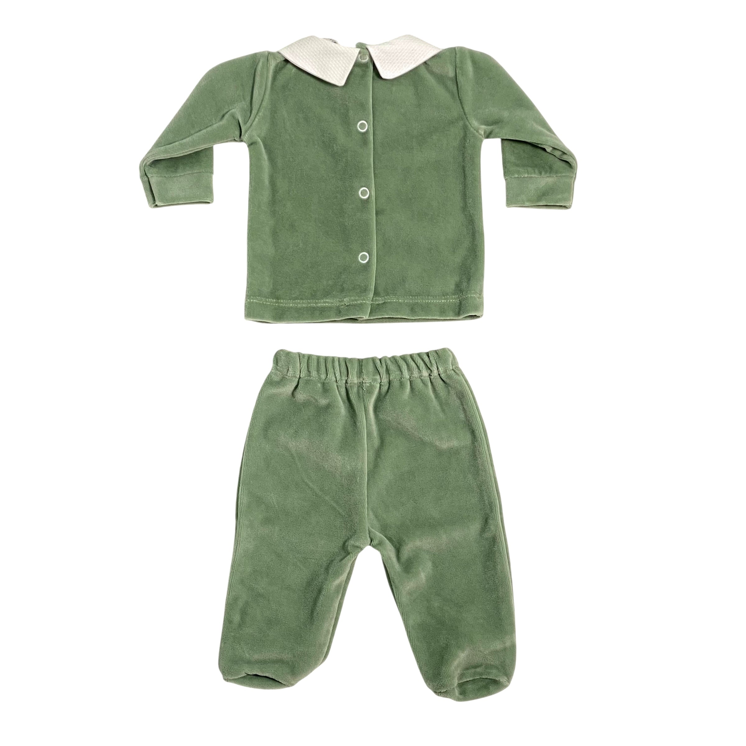 Questa raffinata tutina spezzata in ciniglia è adatta ai primi giorni di vita del tuo neonato. Con eleganti dettagli ricamati, è perfetta per la clinica o per i primi appuntamenti fuori casa. Assicura il massimo comfort e stile per il tuo piccolo.