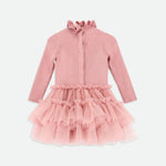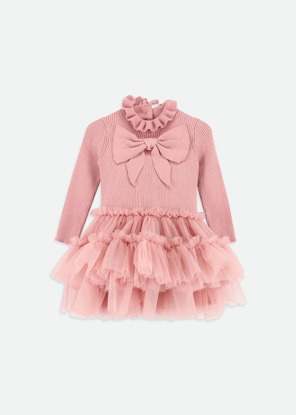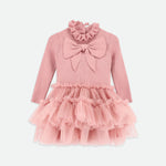 Rendi speciale ogni giorno con questo splendido vestitino rosa per neonata. Il morbido corpetto in maglia di misto cotone presenta un grande fiocco vistoso sul davanti. Deliziosi dettagli a balze decorano spalle e polsini, mentre la gonna è realizzata con strati di tulle arricciato per un volume extra e un effetto svolazzante. Perfetto per compleanni, feste o per vestirsi in modo elegante in qualsiasi giorno.