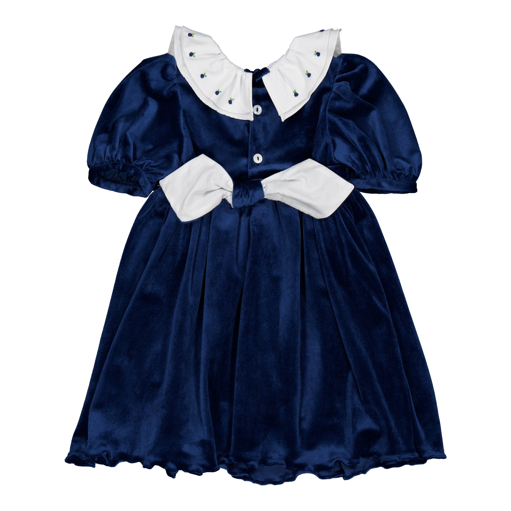 Questo abito elegante in velluto per neonata unisce raffinatezza e comfort. Il dettaglio a punto smoke dona una texture raffinata, mentre il collo rouches ricamato con rosoline aggiunge un tocco delicato e sofisticato. Mezza manica e dalla linea sottile, è perfetto per occasioni speciali, garantendo un look impeccabile e confortevole.