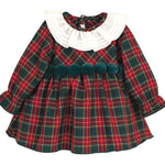 Questo abito elegante scozzese in caldo cotone per neonata garantisce comfort e stile durante le festività natalizie. Il collo con rouches aggiunge un tocco raffinato, mentre il dettaglio con pon pon sul davanti dona vivacità al design classico. Perfetto per momenti speciali, combina tessuti morbidi e finiture curate per valorizzare ogni occasione di festa.
