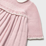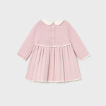 Vestito manica lunga per neonata. Colletto bebè. Chiusura con bottoni sulla schiena per facilitare la vestibilità del capo. Tessuto in tricot morbido al tatto. Modello con pieghe. Disegni in punto jacquard. Scegliendo i nostri prodotti in cotone, supporti il nostro impegno nell'iniziativa Better Cotton. Il cotone Better Cotton è ottenuto attraverso un sistema di bilancio di massa e non può essere fisicamente ricondotto ai prodotti finali. tuttavia, i produttori di cotone beneficiano della domanda di Better Cotton in volumi equivalenti.