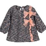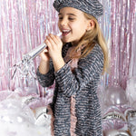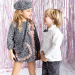 Questo abito elegante per bambina, realizzato in morbido tessuto boucle, unisce raffinatezza e comfort. Le maniche lunghe e gli inserti in tulle donano un tocco di leggerezza e modernità, mentre la gonna svasata valorizza la silhouette con un design di tendenza. Perfetto per occasioni speciali, garantisce stile e praticità in ogni momento.