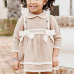 Questo abito neonata in maglia è perfetto per le occasioni speciali. Con maniche lunghe e fiocchi decorativi sul petto, aggiunge un tocco elegante e alla moda al guardaroba della tua bambina. Realizzato in caldo cotone per proteggerla dal freddo.