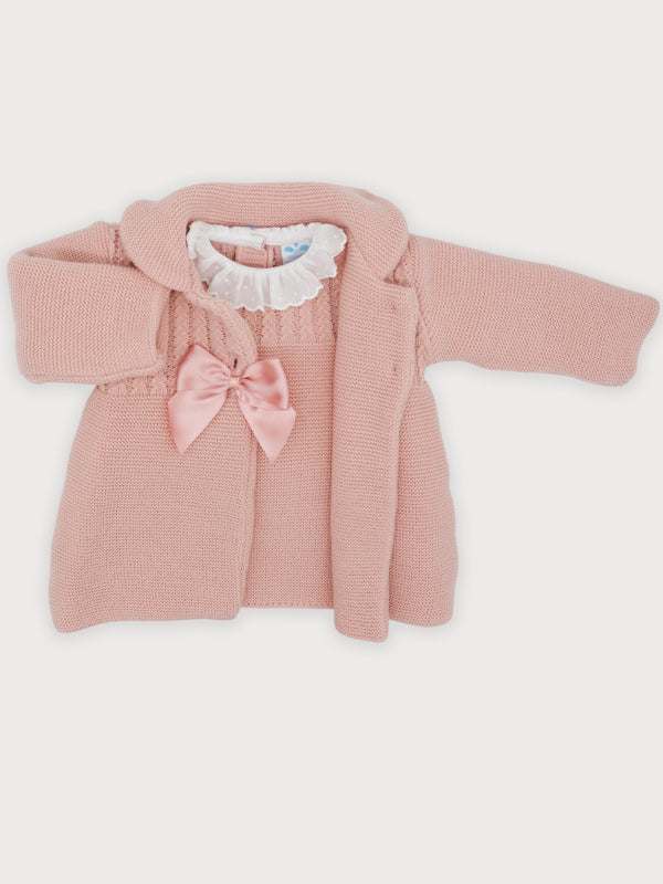 Questo elegante abito manica lunga in tessuto anallergico acrilico assicura il massimo comfort e delicatezza sulla pelle sensibile della neonata. Il colletto bianco in pizzo San Gallo aggiunge un tocco raffinato e tradizionale, perfetto per occasioni speciali. Il cappottino abbinato con collo tondo completa l’insieme, offrendo calore e stile coordinato. Una scelta ideale per vestire con eleganza e cura le più piccole.