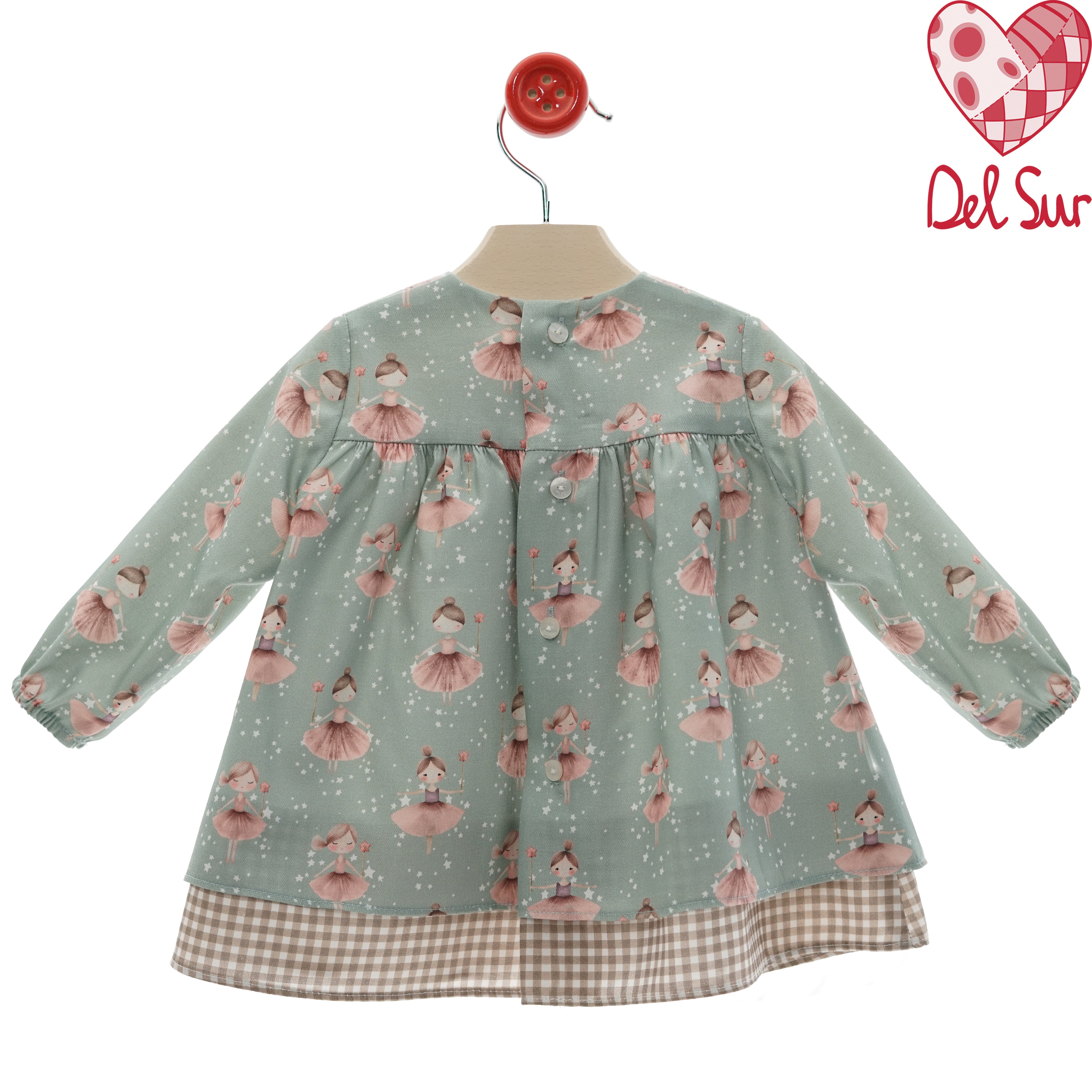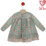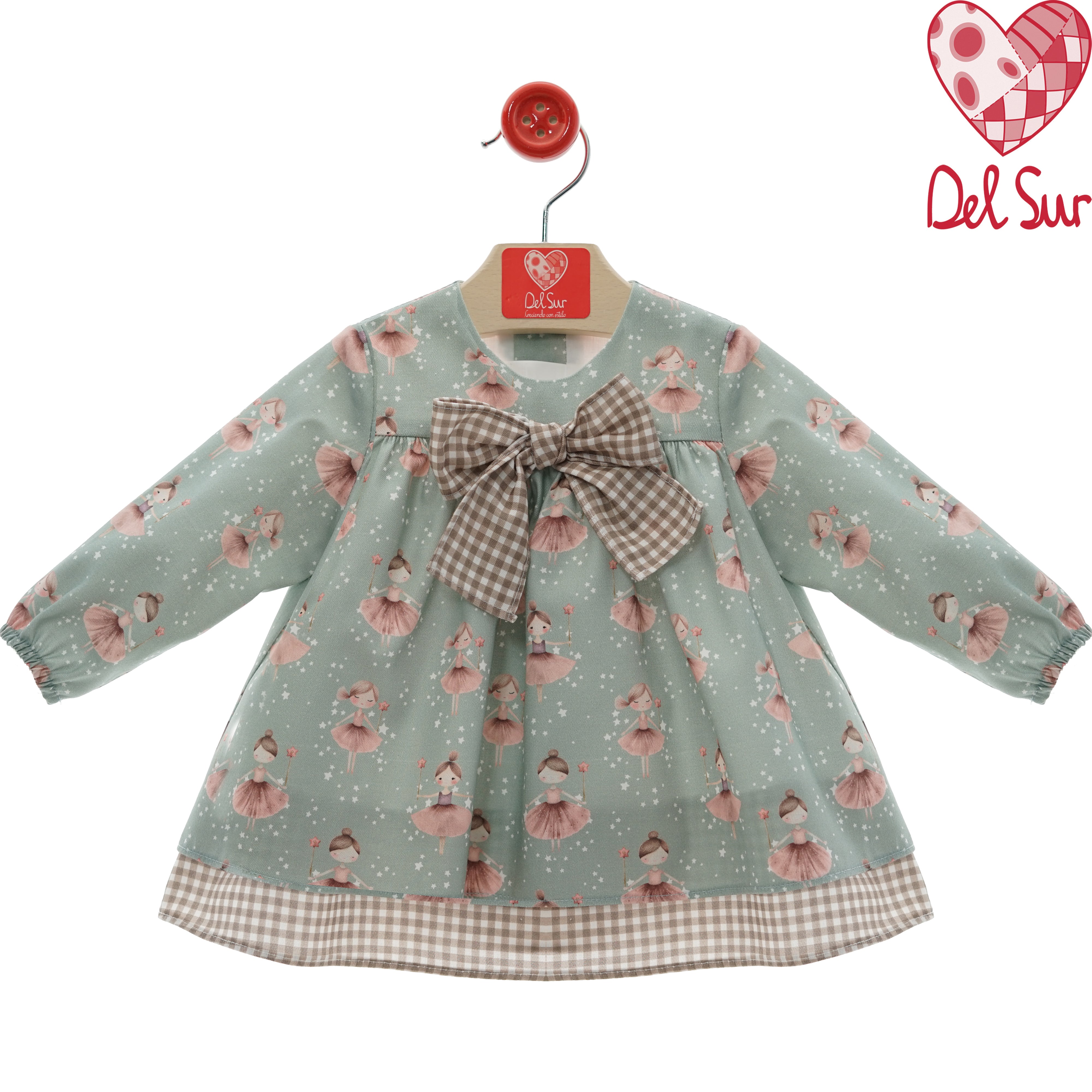 Questo abito svasato in caldo cotone è ideale per neonate, con una stampa a fantasia ballerina che unisce eleganza e stile casual. La manica lunga offre comfort e protezione nelle stagioni più fresche, mentre il fiocco sul davanti aggiunge un dettaglio raffinato e femminile. Perfetto per occasioni speciali o per un look quotidiano alla moda e confortevole.