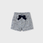 Pantalone corto per bambina. Elastico regolabile in vita che garantisce un migliore vestibilità. Modello con pinces. Elementi decorativi: fiocco.