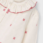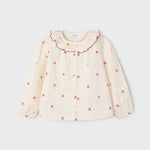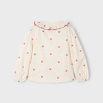 Blusa manica lunga per bambina con polsini elasticizzati. Girocollo con volant. Chiusura con bottoni nella parte anteriore. Design stampato. Scegliendo i nostri prodotti in cotone, supporti il nostro impegno nell'iniziativa Better Cotton. Il cotone Better Cotton è ottenuto attraverso un sistema di bilancio di massa e non può essere fisicamente ricondotto ai prodotti finali. tuttavia, i produttori di cotone beneficiano della domanda di Better Cotton in volumi equivalenti.
