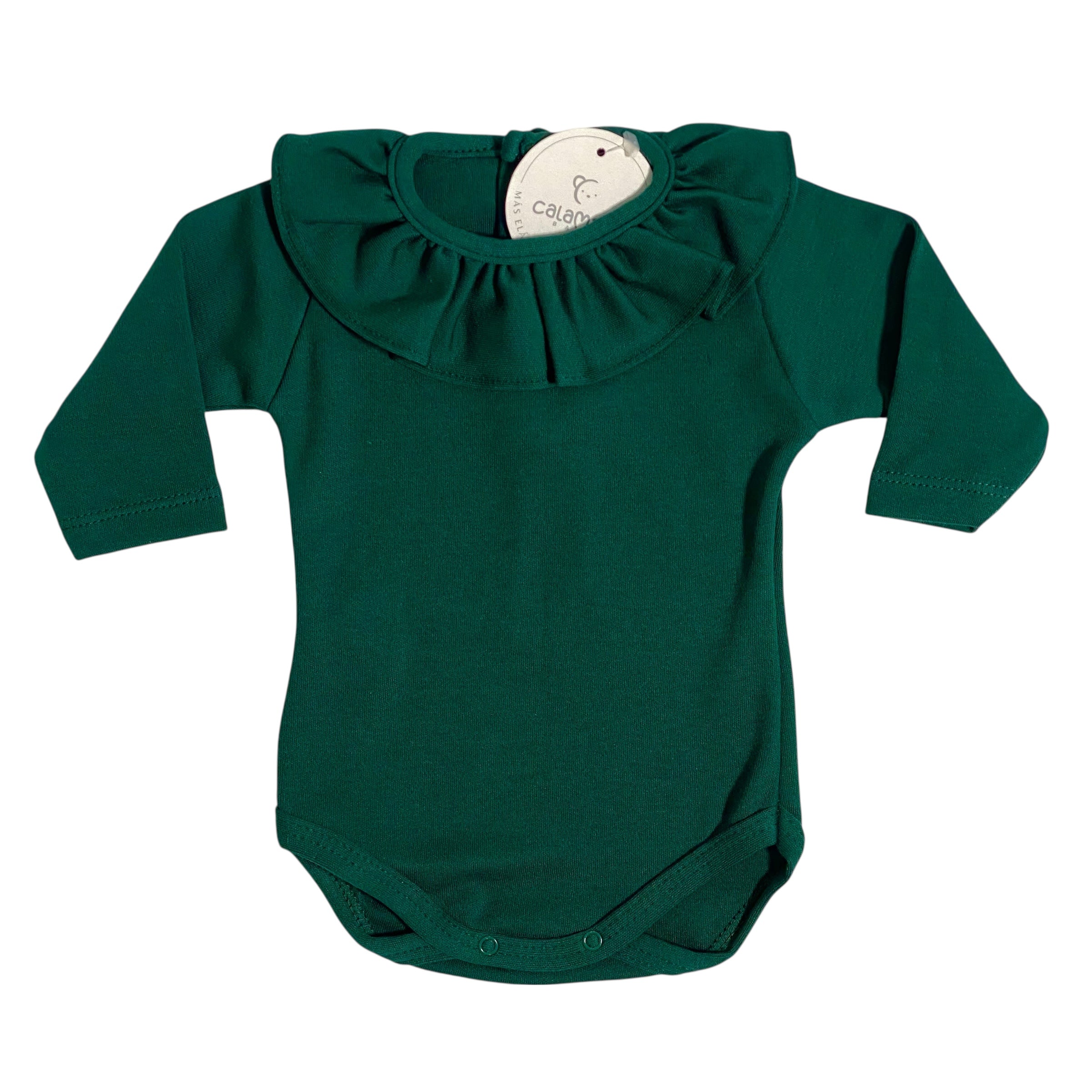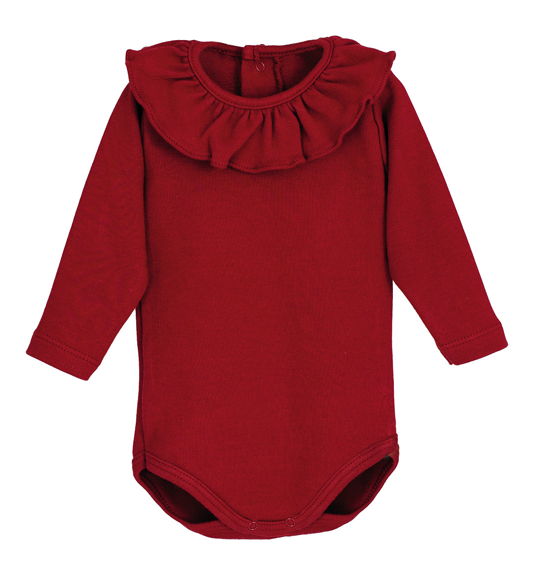 Questo body a manica lunga in caldo cotone è ideale per la neonata, garantendo comfort e calore durante le giornate più fresche. Il collo con rouches aggiunge un tocco di eleganza e delicatezza, completando con stile ogni outfit. Perfetto per chi cerca un capo pratico ma raffinato per il guardaroba della propria bambina.