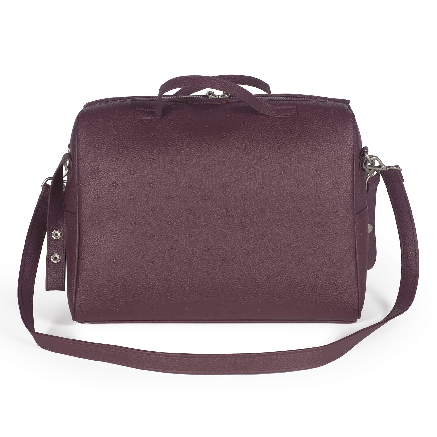 Beautiful and comfortable, the changing bag by Pasito a Pasito from the London line in black eco-leather with a pattern with tone-on-tone stars in bas-relief, side handles and longer shoulder strap. inside the bag is lined and has more compartments and pockets to store objects in a more organized way. the bag also offers a comfortable changing mat as a gift