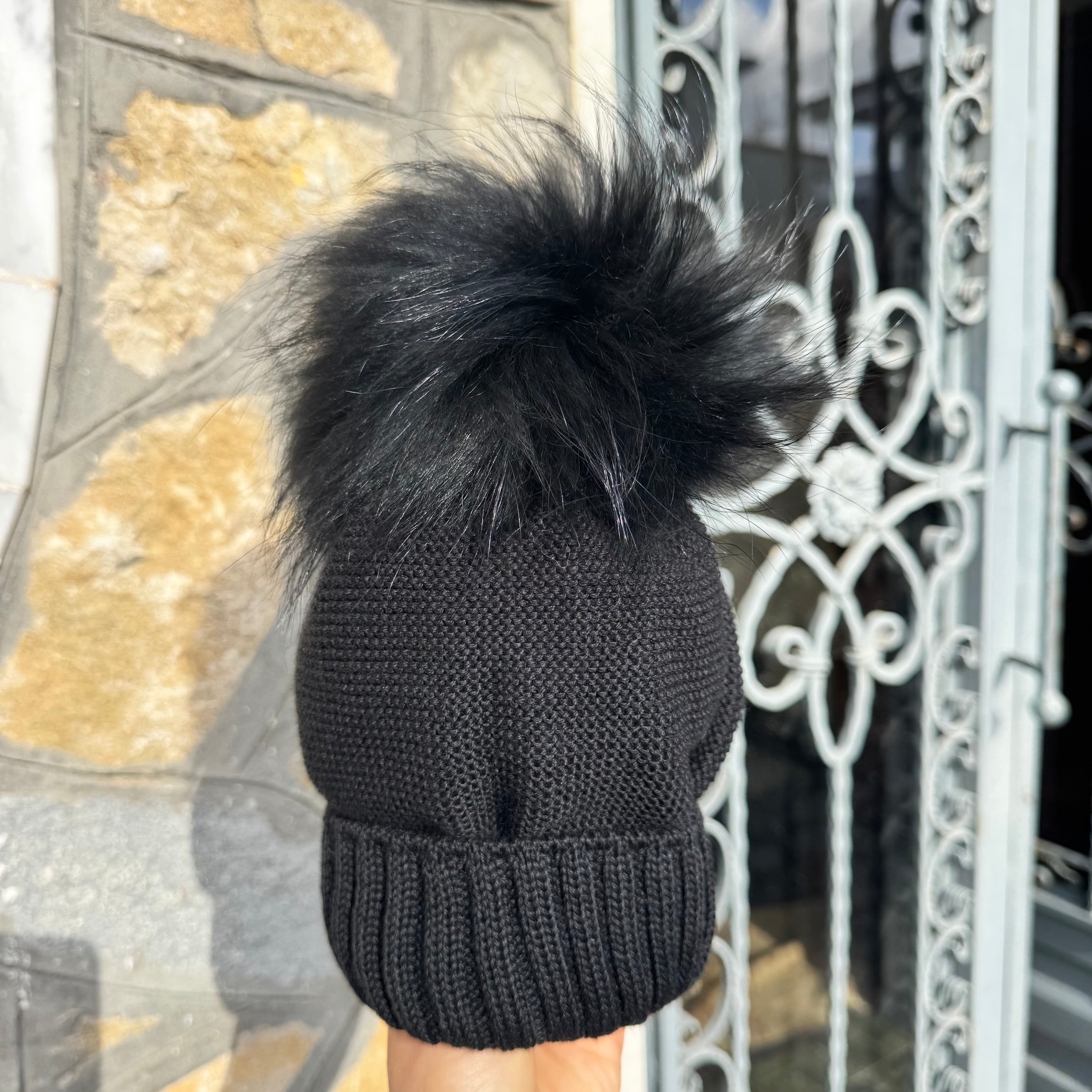 Smooth wool blend hat, with original fur cuff and pom pom.