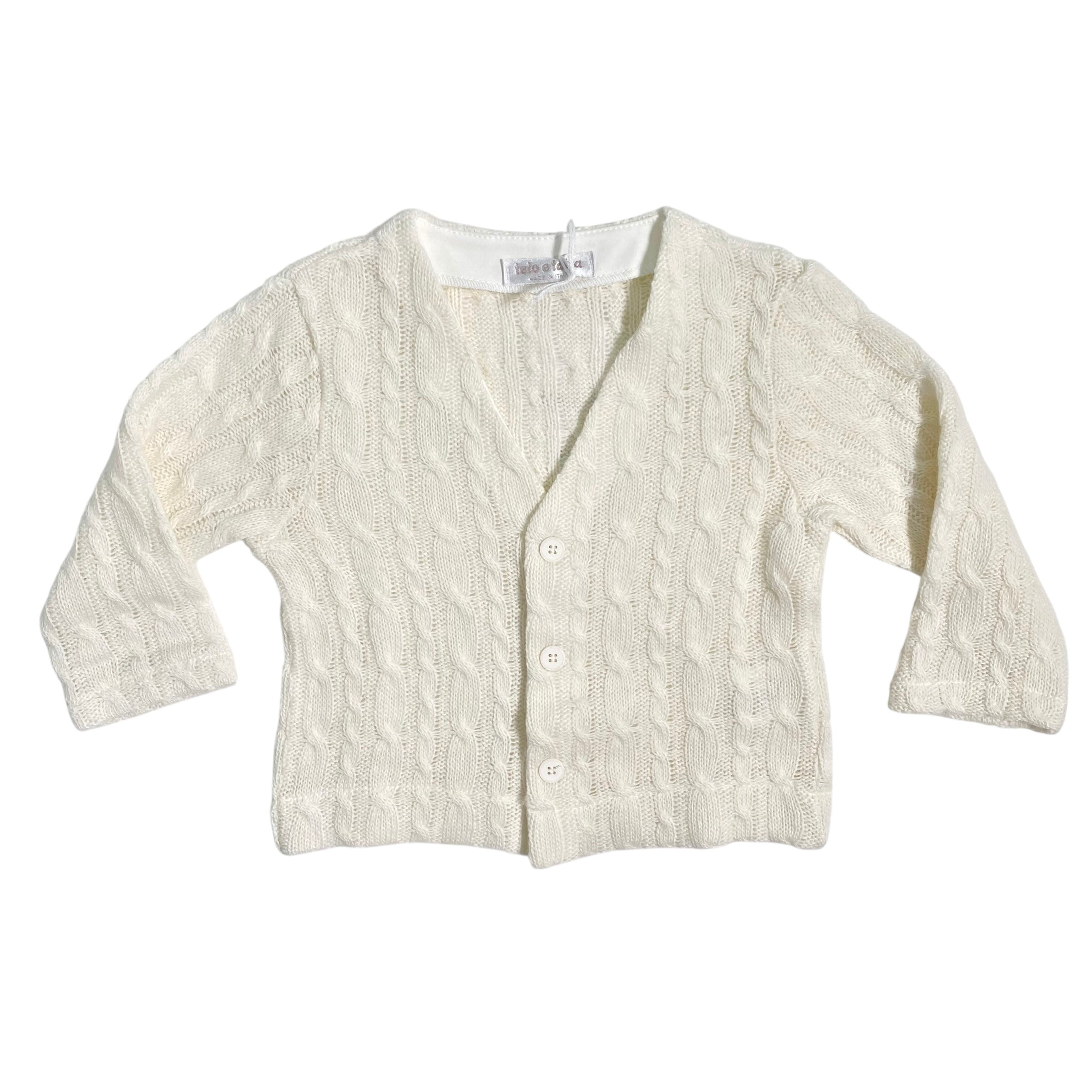 Questo cardigan elegante in misto lana è ideale per neonati, caratterizzato da una raffinata lavorazione a trecce e uno scollo a V che conferisce un aspetto sofisticato. I bottoncini in madreperla aggiungono un tocco di classe, rendendolo perfetto per completare outfit formali e confortevoli, garantendo al contempo morbidezza e calore.