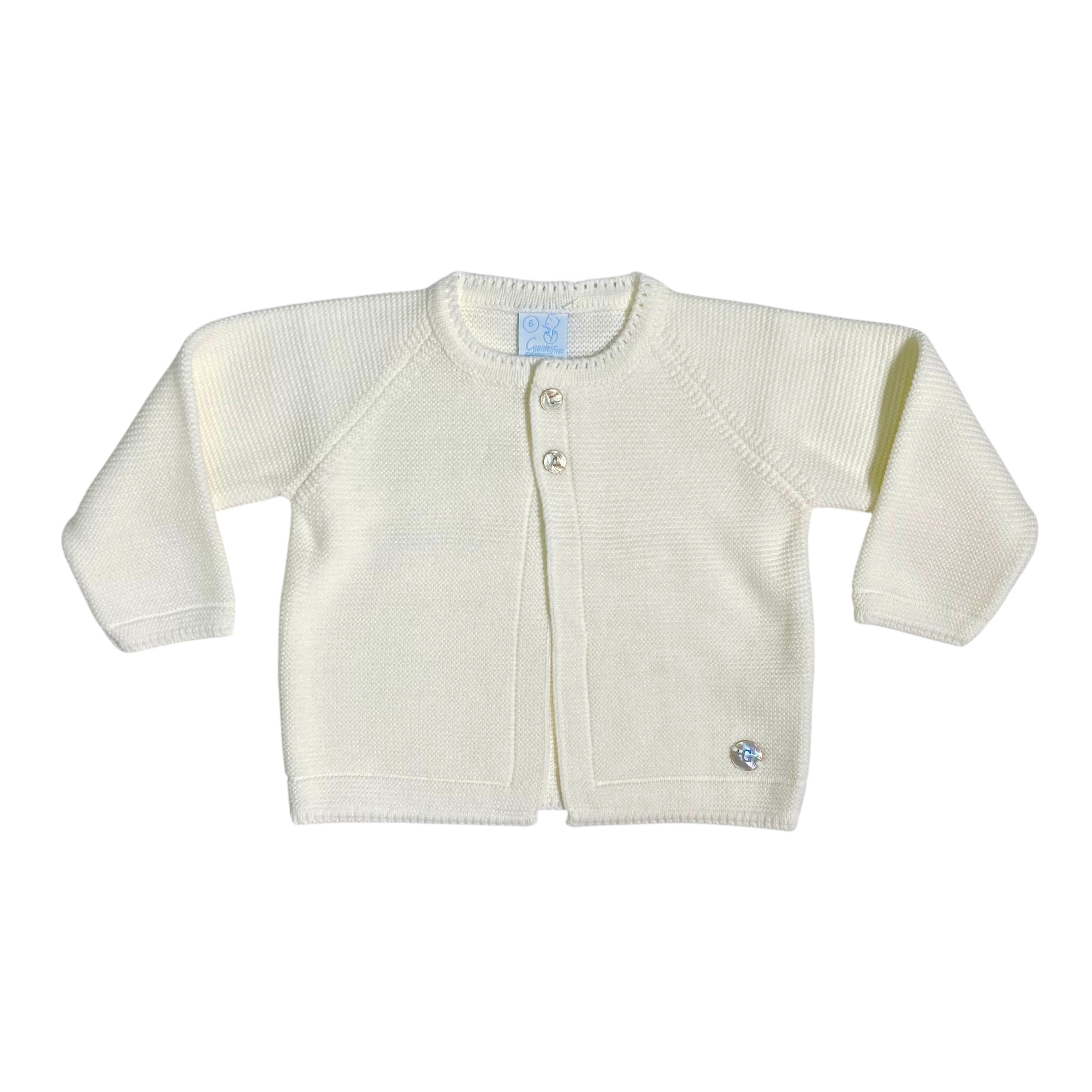 Questo cardigan in acrilico anallergico, dal tessuto morbido e delicato, è ideale per la pelle sensibile dei neonati. Con maniche lunghe, offre comfort e protezione, rappresentando la scelta perfetta per completare con stile ogni outfit del tuo bambino.