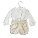 -bermuda in velluto beige con pences, elastico sul retro della vita e delle gambine