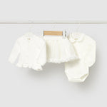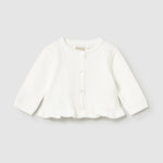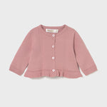 Cardigan manica lunga per neonata. Girocollo. Chiusura con bottoni nella parte anteriore. Design con volant nella parte bassa.