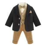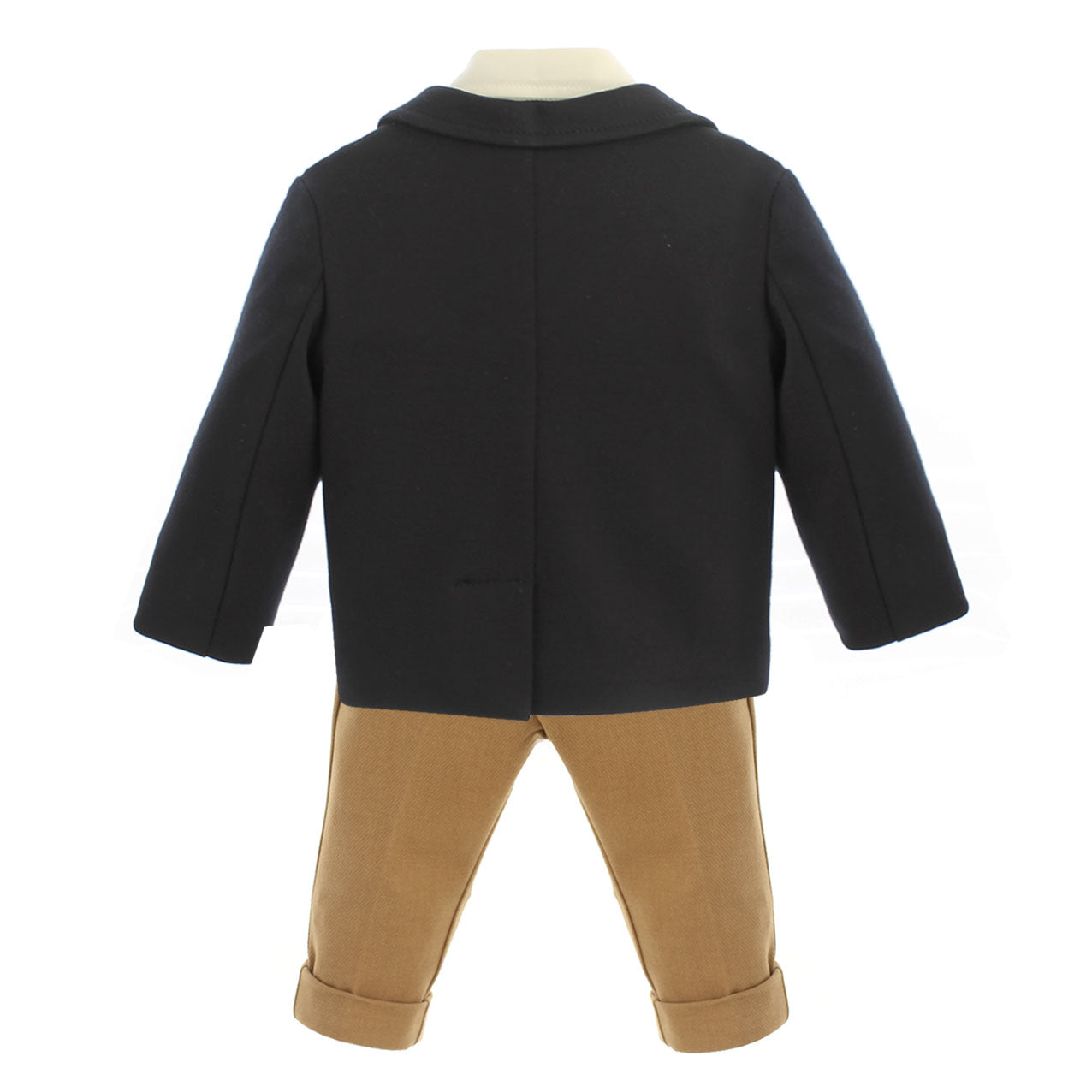 Il Completo Invernale Elegante Con Giacca Neonato BUFI è un outfit raffinato pensato per le occasioni speciali. Include pantaloni lunghi in panno, una camicia panna tinta unita, un panciotto e papillon in tessuto a pois, oltre a una giacca in punto Milano blu. Questo completo coniuga eleganza e comfort, garantendo uno stile sofisticato e una vestibilità perfetta per il tuo bambino durante la stagione fredda.