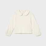 Maglietta manica lunga per neonata. Colletto bebè. Piccola apertura sulla schiena con chiusura con bottone per facilitare la vestibilità del capo. Modello con riccio. Orlo elasticizzato per una migliore vestibilità.