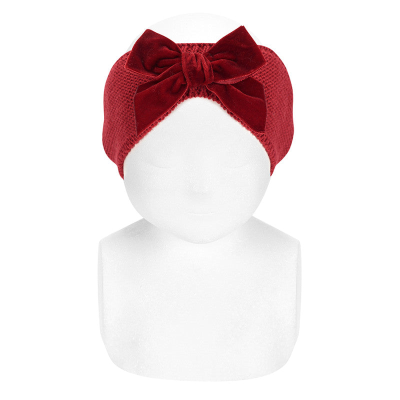 Questa fascia per capelli lavorata a maglia unisce eleganza e comfort, con un grande fiocco in velluto coordinato che aggiunge un tocco raffinato. Perfetta per neonate, garantisce una vestibilità delicata sulla pelle sensibile, rendendola ideale per ogni occasione speciale.