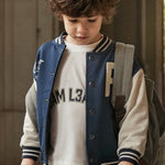 Felpa manica lunga per bambino. Collo bomber. Chiusura con bottoni nella parte anteriore. Polsini e orlo elasticizzati per una migliore vestibilità. Elementi decorativi: ricami nella parte anteriore.