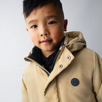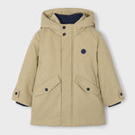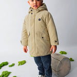 Giaccone manica lunga per bambino. Colletto con cappuccio. Chiusura con cerniera e bottoni. Morbida fodera interna in poliestere. Tasche funzionali nella parte anteriore.