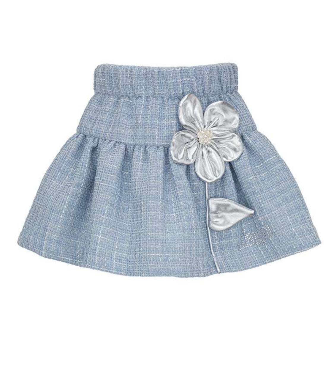 Questa gonna ampia in velluto per neonata unisce comfort e stile grazie all'elastico in vita, che garantisce una vestibilità perfetta. Il design a ruota crea un effetto volume elegante, mentre l'applicazione floreale sul davanti aggiunge un tocco di raffinatezza e modernità, ideale per occasioni speciali o look di alta moda per bambini.