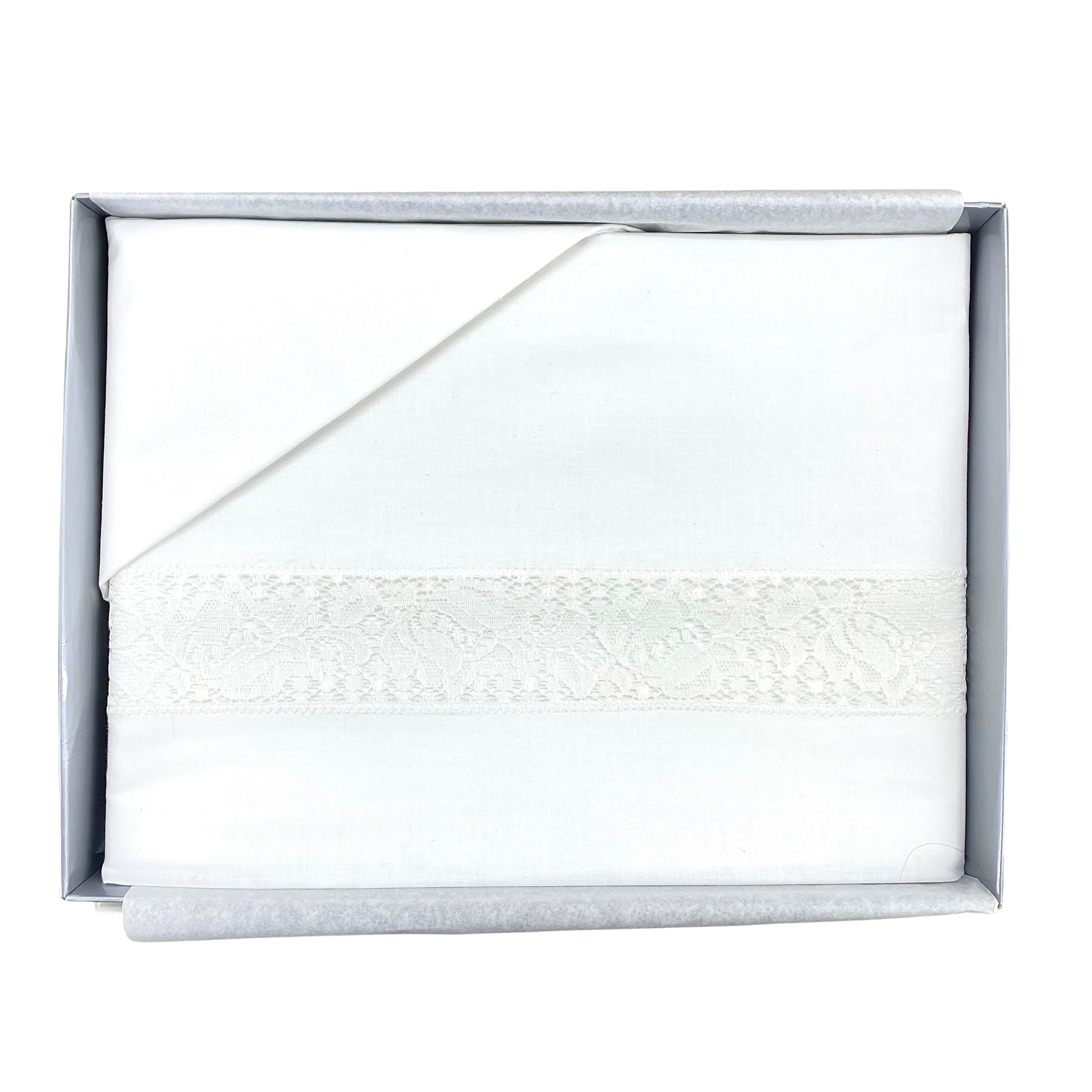 Questo lenzuolino per carrozzina in puro cotone garantisce morbidezza e traspirabilità ideali per la pelle delicata del neonato. Arricchito da una fascia in pizzo centrale, unisce eleganza e artigianalità. Il set comprende federa e coprimaterasso, assicurando una completa protezione e comfort per il corredino del bambino. Perfetto per chi cerca qualità e cura nei dettagli per il primo nido del piccolo.