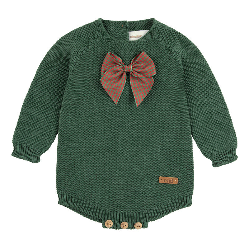 Questo pagliaccetto per neonata in caldo cotone a maglia a coste offre morbidezza e comfort ideali per la pelle delicata dei più piccoli. Dotato di pratici bottoni sul fondo, facilita il cambio senza stress. Il dettaglio del fiocco natalizio a quadretti sul petto aggiunge un tocco festoso e raffinato, perfetto per le occasioni invernali. Un capo funzionale e curato che assicura tenuta termica e stile, firmato CONDOR.