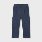 Pantalone per bambino stile cargo: ampio nella parte superiore, con cavallo basso e vestibilità normale sulla gamba. Chiusura con cerniera e bottone. Elastico regolabile in vita che garantisce un migliore vestibilità. Modello con varie tasche. Per motivi di sicurezza, nelle taglie piccole (2-5 anni) la cerniera è sostituita da una finta patta.