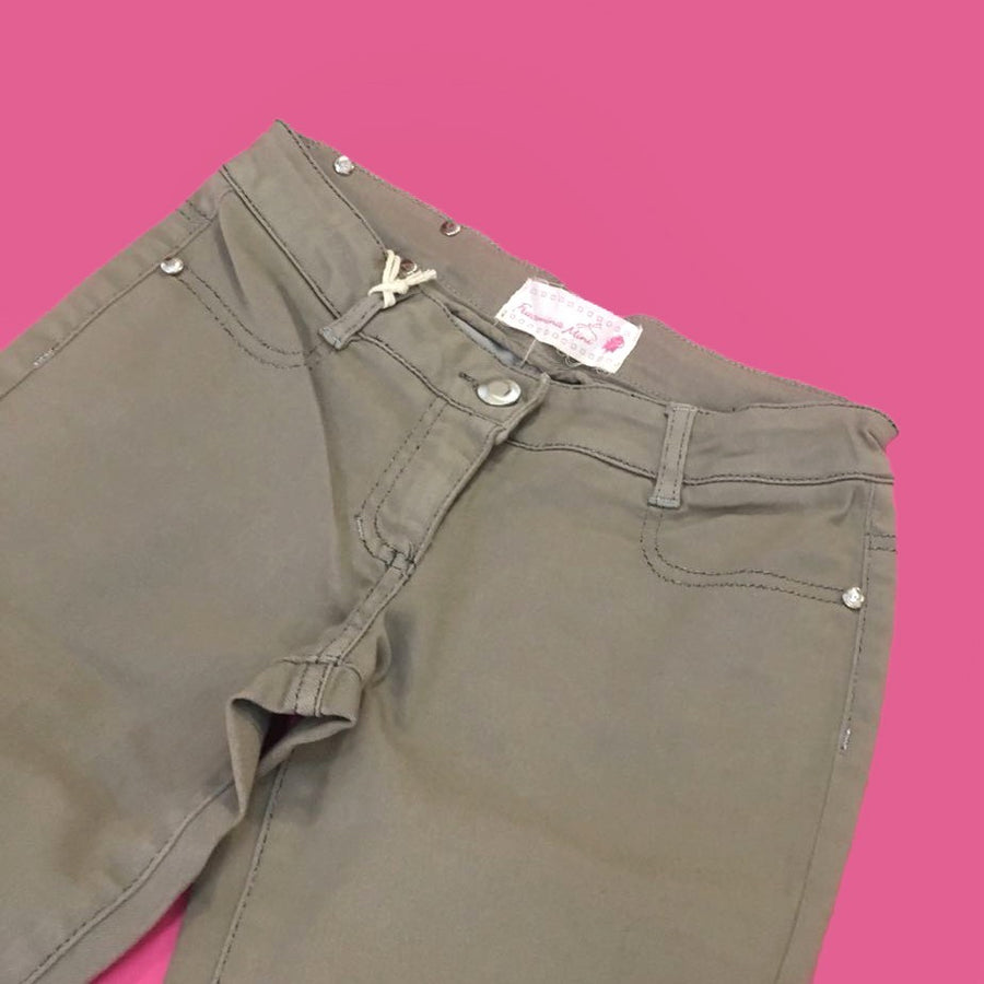 Warm beige cotton trousers in solid color with elastic inside that allows you to adjust the fit
