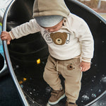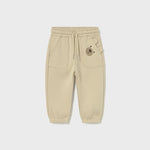 Pantalone per neonato della linea sporty, molto comodo. Vita elasticizzata con cordoncino regolabile. Ginocchiere rinforzate nella parte interna pensate per donare maggiore resistenza nella zona più esposta ad usura. Orlo elasticizzato per una migliore vestibilità. Tasche funzionali nella parte anteriore. Tasca funzionale posteriore. Elementi decorativi: applicazione orecchie, ricamo, Serigrafia (print).