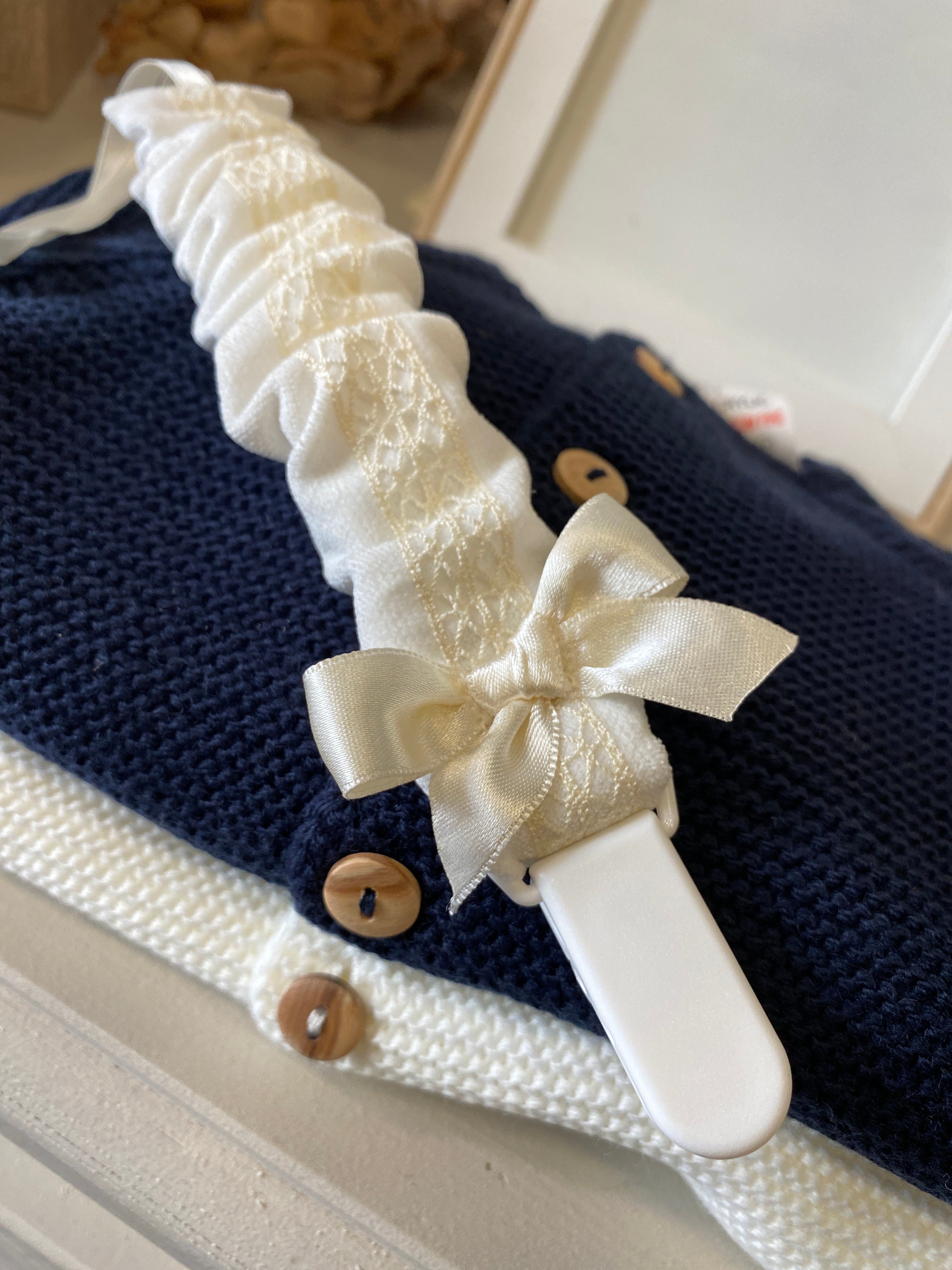 Il Portaciuccio in Velluto PONTO POR PONTO unisce eleganza e funzionalità. Realizzato in morbido velluto, è ideale per il battesimo, offrendo un accessorio raffinato e pratico. La sua conformazione compatta garantisce comodità e facilità di trasporto, mantenendo il ciuccio sempre pulito e a portata di mano. Perfetto per chi cerca un dettaglio di classe senza rinunciare alla praticità quotidiana.