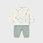 Set 4 pezzi per neonato costituito da 2 completi di felpa e pantalone lungo abbinabili.