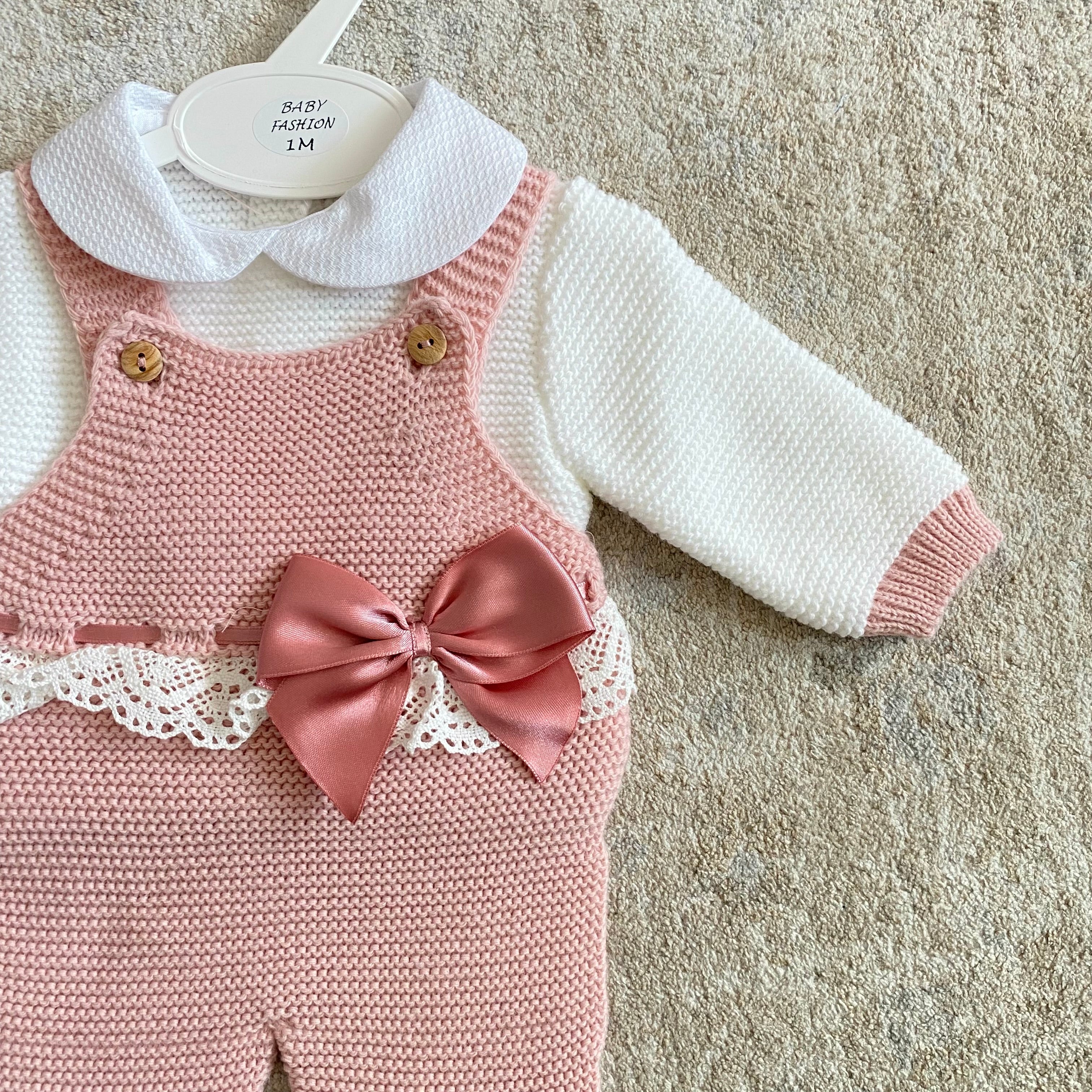 Questo completo neonato in due pezzi include una tutina intera con piedini e un maglioncino raffinato con colletto in piquet, pensato per garantire comfort e stile. Perfetto come corredino, combina praticità e un design curato per accompagnare la tua bambina con morbidezza e eleganza fin dai primi giorni.