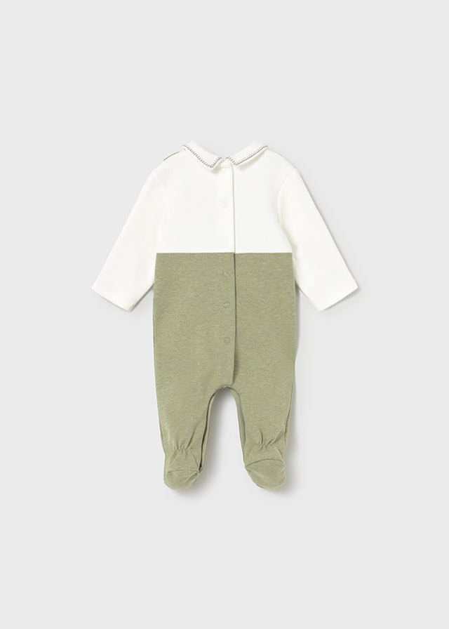 Pagliaccetto manica lunga per neonato. Colletto modello camicia. Modello con finta salopette sovrapposta. Chiusura con bottoni a pressione nella parte posteriore. Chiusura con bottoni a pressione nell'interno cosce per agevolare la vestibilità. Capo con gamba estensibile. Scegliendo i nostri prodotti in cotone, supporti il nostro impegno nell'iniziativa Better Cotton. Il cotone Better Cotton è ottenuto attraverso un sistema di bilancio di massa e non può essere fisicamente ricondotto ai prodotti finali. tuttavia, i produttori di cotone beneficiano della domanda di Better Cotton in volumi equivalenti.