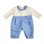 Tutina intera con corpetto in misto lana panna e parte inferiore in tessuto celeste con micropoise.