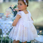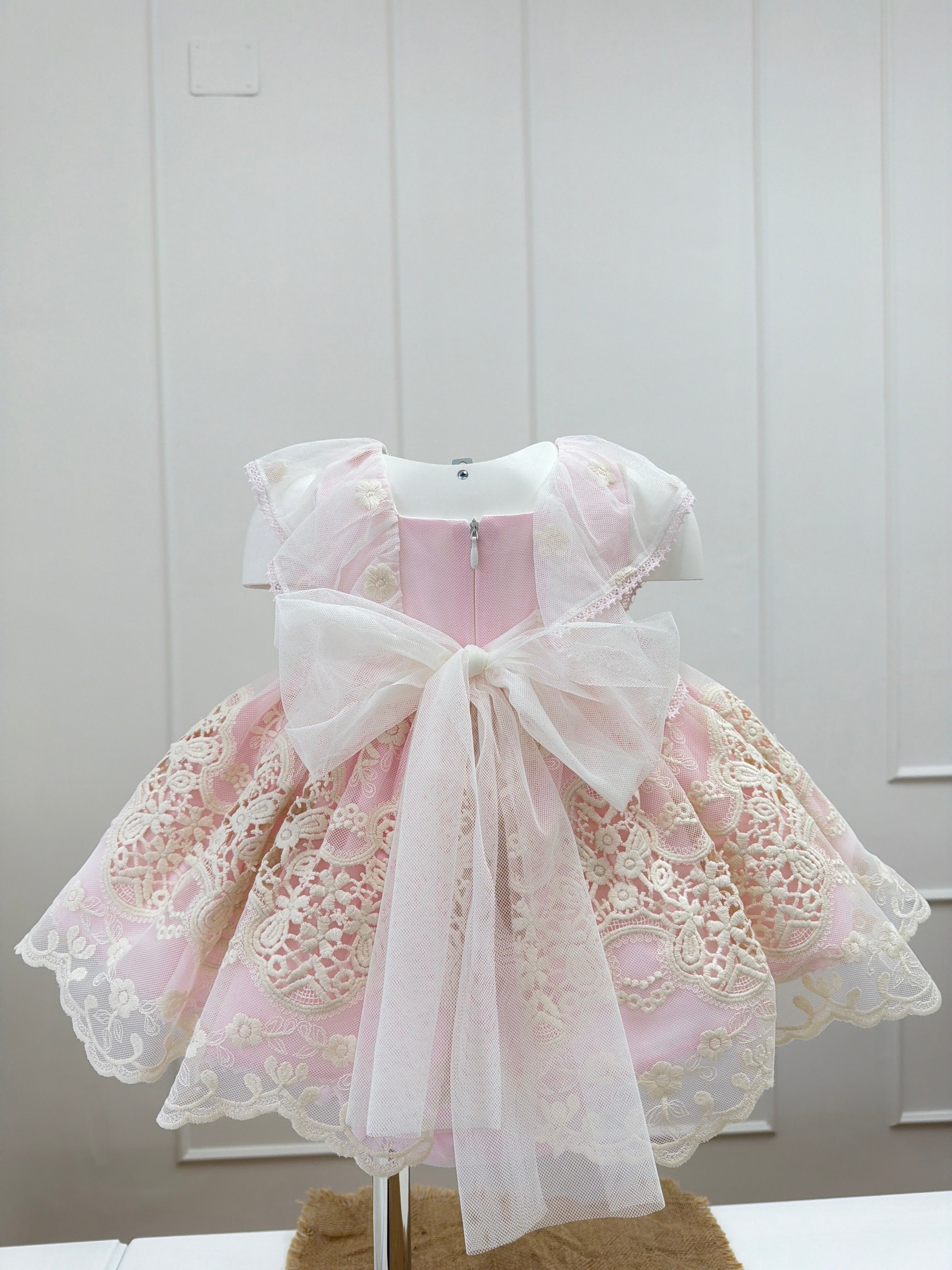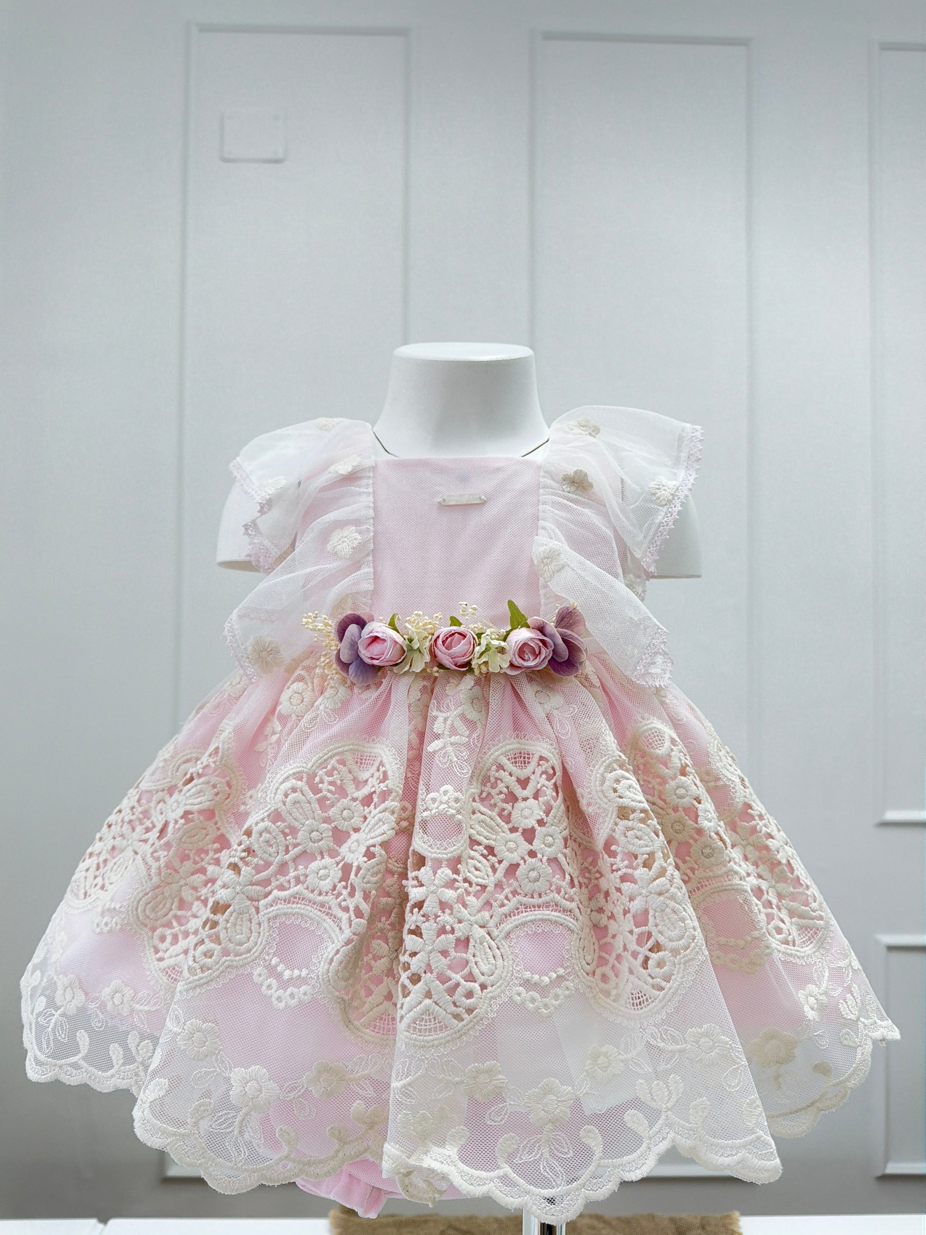 Questo delicato abito smanicato in pizzo è pensato per le occasioni speciali della vostra piccola. Il design principesco presenta una spilla di fiori removibile in vita, che aggiunge un tocco di eleganza sofisticata. La lavorazione in pizzo pregiato garantisce comfort e traspirabilità, perfetto per la pelle sensibile dei bambini. Un capo versatile che trasforma ogni momento in un'occasione indimenticabile.